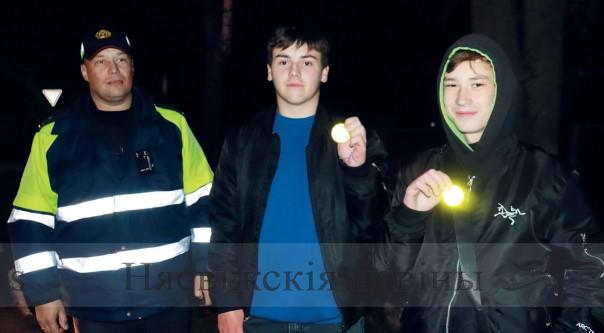 Несколько встреч с вечерними пешеходами на улицах агрогородка Ударный: напоминание о собственной безопасности, предупреждение об административной ответственности, вынесение предупреждения за нарушение пункта 17.1 ПДД за движение по проезжей части дороги в темное время суток без светоотражающего элемента, вручение фликеров.