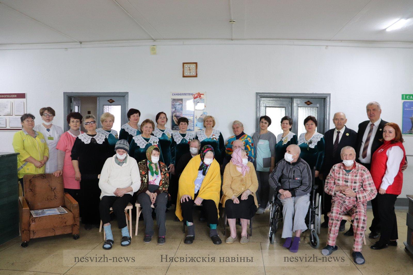 Но на вручении подарков добрые дела приехавших волонтеров не закончились — приятным сюрпризом стал концерт, организованный для пациентов хором ветеранов труда «Оптимисты» под руководством Ирины Латушко. А аккомпанировал активным представителям старшего возраста музыкант Александр Герасимович.