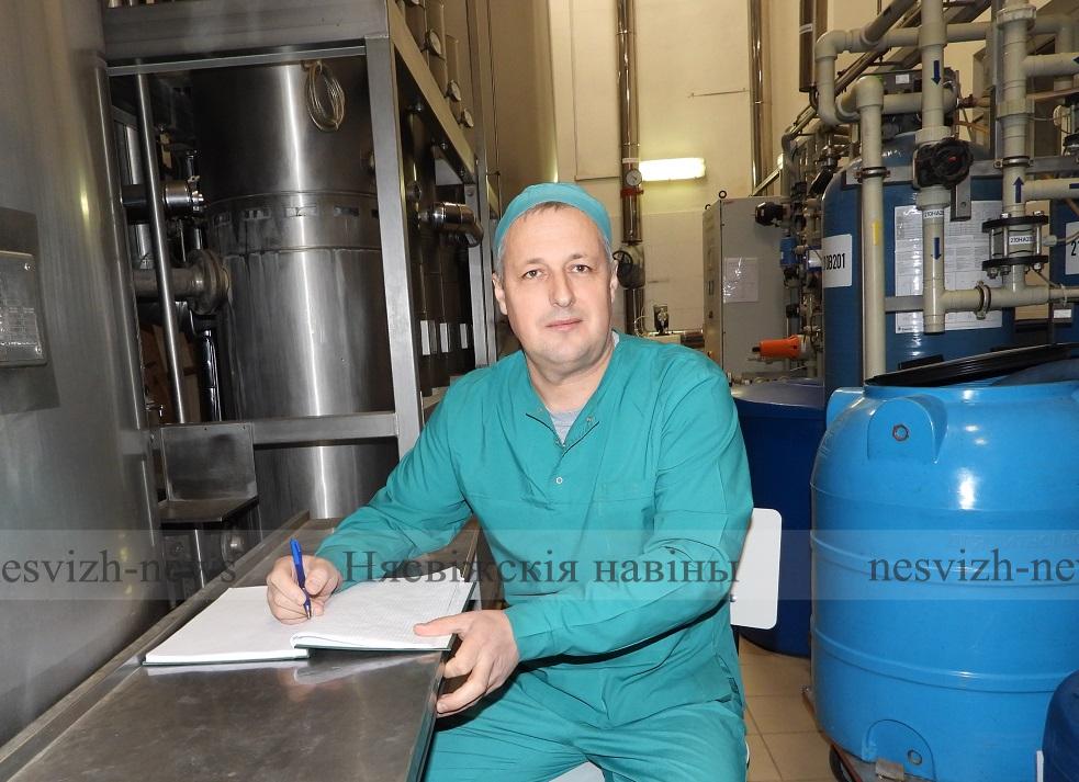 Валерый Камлач, апаратчык абяссольвання вады ААТ “Нясвіжскі завод медыцынскіх прэпаратаў” адзначыць сёлета своеасаблівы працоўны юбілей — 25 гадоў сваёй работы на прадпрыемстве.