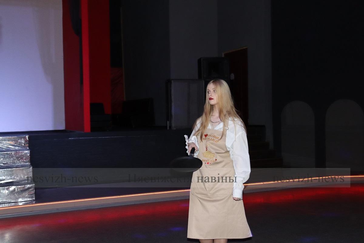 В нескольких конкурсных этапах представительницы четырех школ нашего города соревновались в артистизме, ораторском искусстве, творческой импровизации и танце. Свои таланты и умение держаться на сцене участницы продемонстрировали в конкурсе визитных карточек «Сказочная девушка», в импровизации «Собеседование», в музыкально-литературном конкурсе «Музы Нясвіжа», в дефиле «Хозяюшка» и «Вечерний выход».