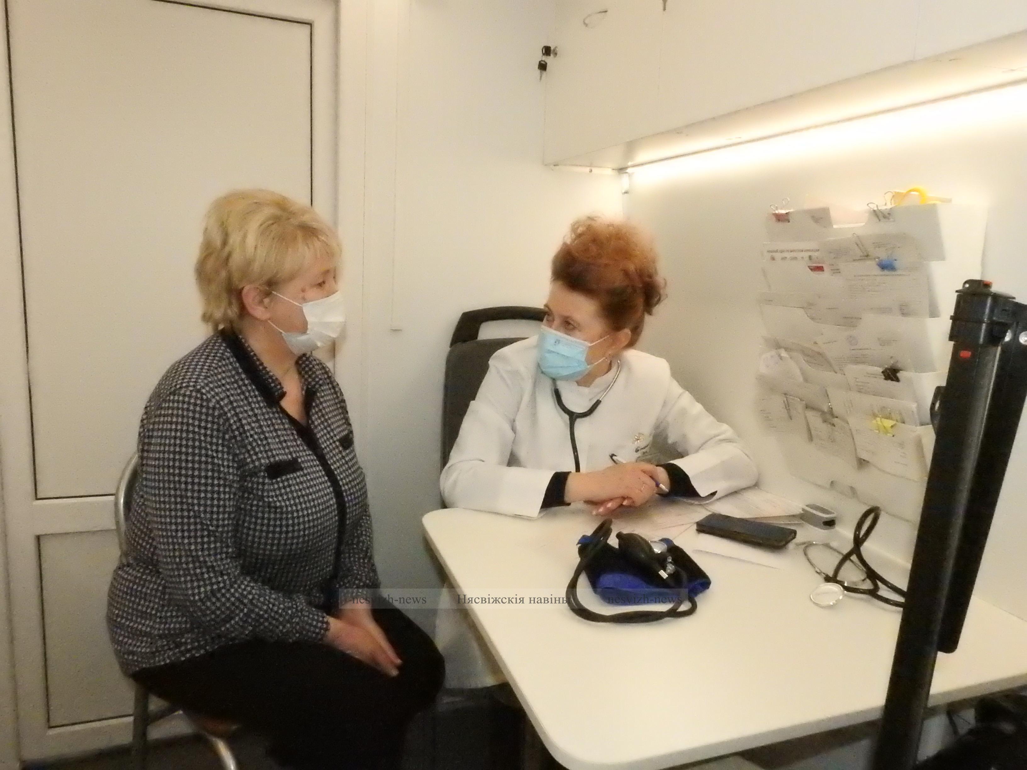 Через некоторое время после встречи с психологом ЦРБ работники завода медпрепаратов могли с минимальным отрывом от рабочего процесса посетить передвижной медицинский комплекс, в котором вела прием врач общей практики Людмила Рацкевич.