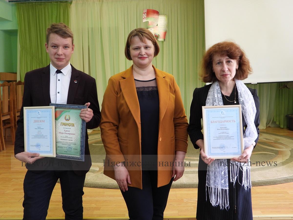 Узнагародзіць, павіншаваць і падзякаваць за ўдзел асабіста Ігару і кіраўніцтву Нясвіжскай гімназіі прыехала намеснік дырэктара Мінскага філіяла РУП “Белпошта” Алена Ішчук. Яна ўручыла дыплом, граматы і падарункі вучню і педагогу ўстановы адукацыі.