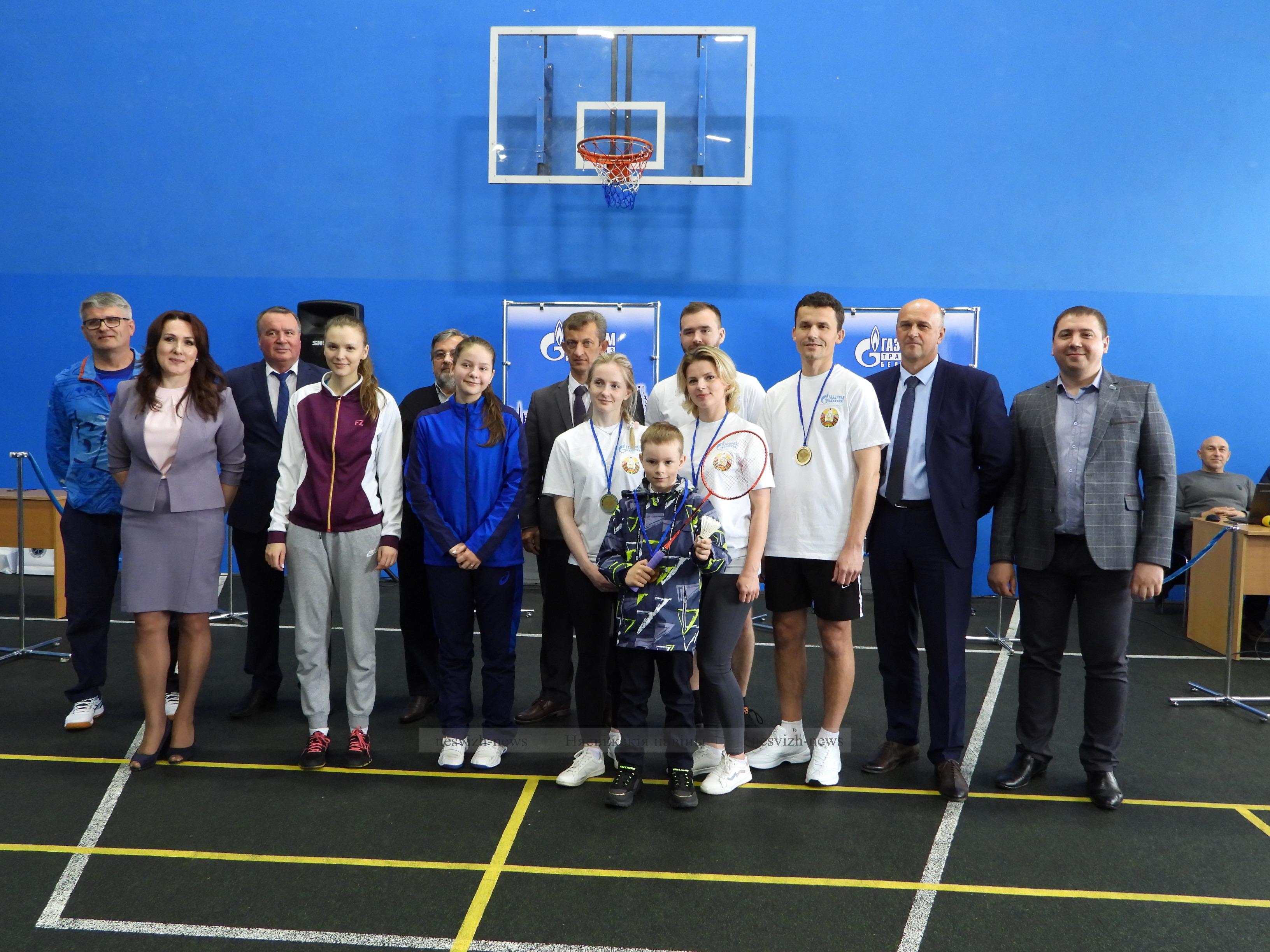 С приветственным словом к собравшимся обратился начальник Несвижского управления магистральных газопроводов Сергей Лапин. Он поблагодарил одного из почетных гостей — генерального директора ОАО «Городейский сахарный комбинат» Геннадия Соловья за предложенную идею и инициативу развивать бадминтонный спорт на Несвижчине. Поздравили присутствующих также заместитель председателя Несвижского райисполкома Александр Балтенков и заместитель председателя ОО «Белорусская федерация бадминтона» Владимир Лукащик, отметив не только усилия филиала к созданию всех необходимых условий для занятий спортом своим сотрудникам, но и стремление местной власти для всевозможного и полноценного оздоровления населения. Владимир Сергеевич вручил руководителю Несвижского УМГ Сергею Лапину кубок «Символ бадминтона» и книгу с историей развития этого вида спорта.
