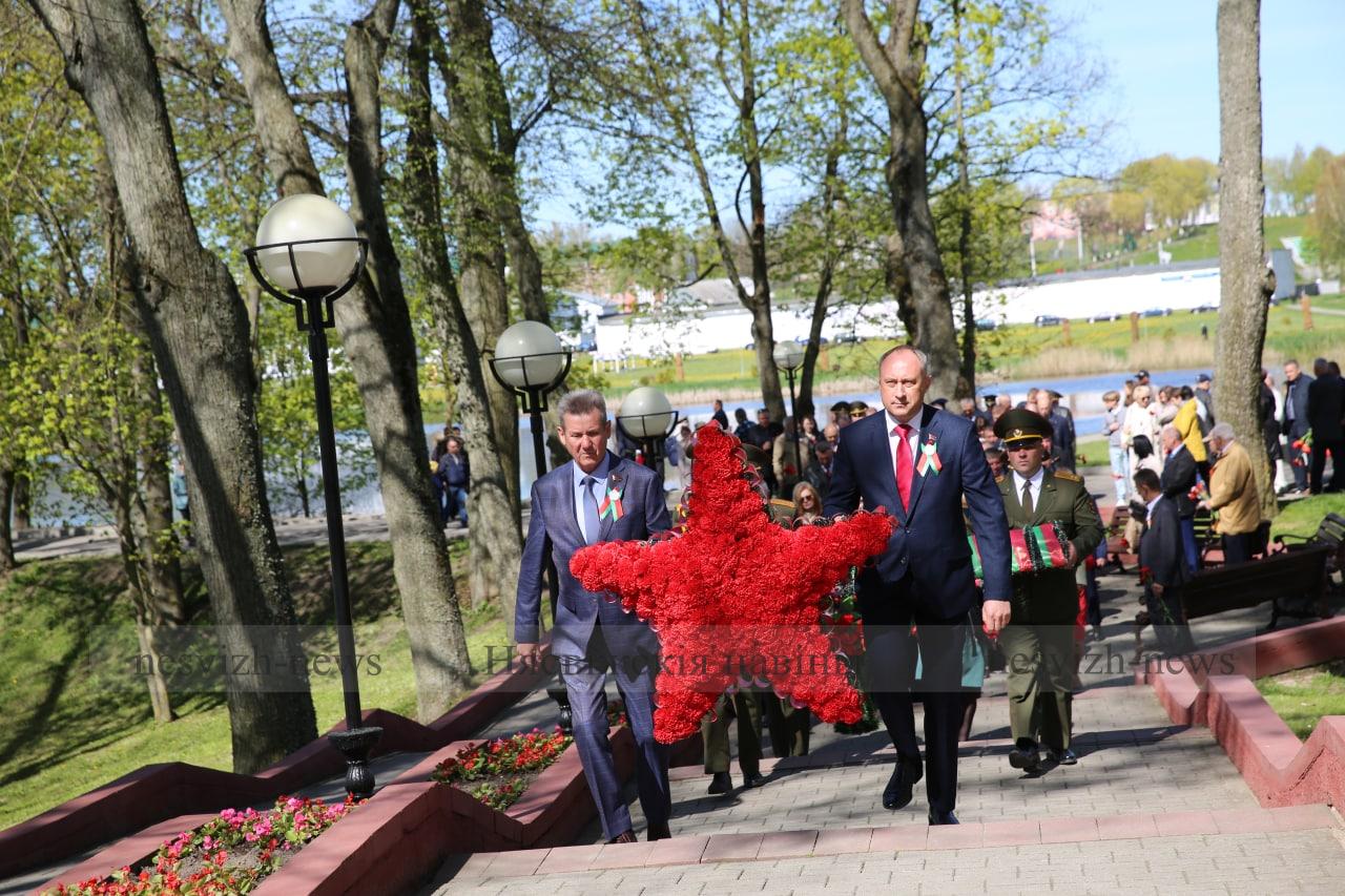 Митинг-реквием прошел у Братской могилы советских воинов в городском парке Несвижа. С праздником несвижан и гостей города поздравили председатель районного исполнительного комитета Александр Ломский, начальник районного отдела по чрезвычайным ситуациям Владимир Вашкевич, первый секретарь РК ОО «БРСМ» Екатерина Июльская. Минутой молчания почтили память погибших в годы войны и возложили гирлянды, венки и цветы к монументу.