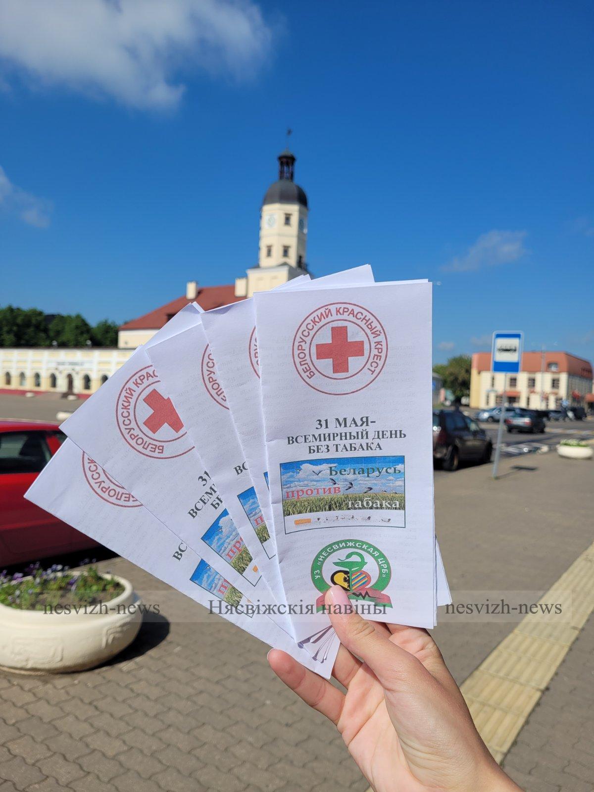 Сегодня, Всемирный день без табака, волонтеры районной организации Белорусского Общества Красного Креста, совместно с работниками УЗ «Несвижская ЦРБ» обратились к жителям и гостям города, чтобы в очередной раз напомнить о вреде пагубной привычки, особенно для подростков. Для проведения акции были подготовлены буклеты с информацией о лечении никотиновой зависимости, программах отказа от курения, а также о воздействии табачного дыма на экосистему.