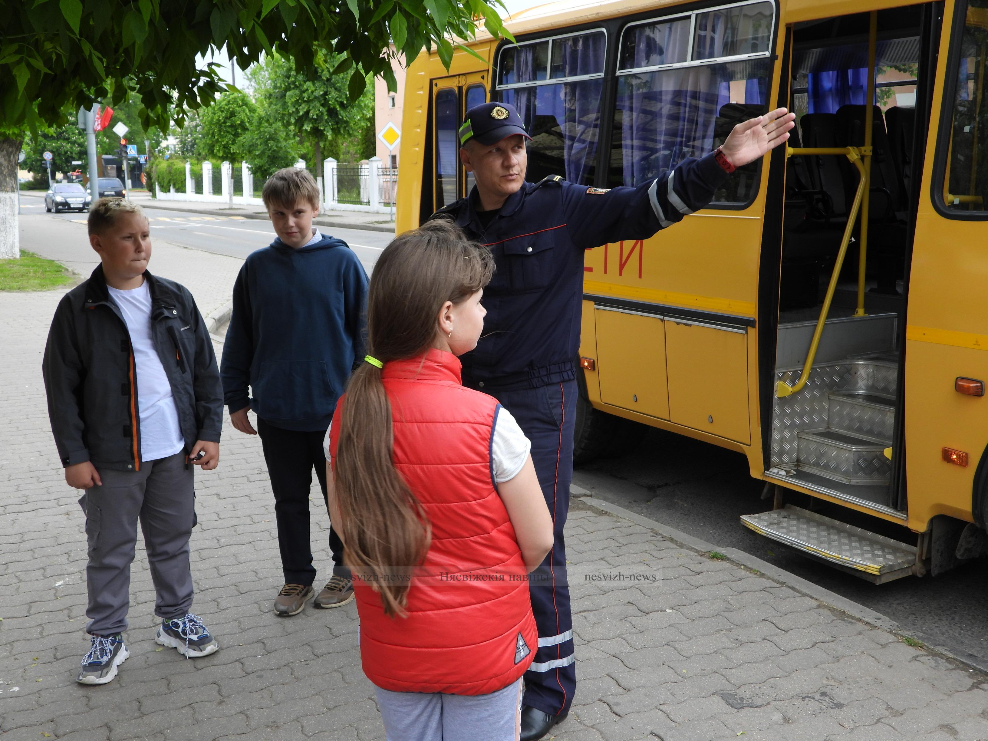 Беседа с ребятами проходила во время небольшого путешествия по городу на школьном автобусе. Разговор шел не только о том, как нужно вести себя в транспорте, но и об основных правилах поведения на дороге, которые полезно знать юным участникам дорожного движения. Одним из пунктов следования стала автобусная остановка возле средней школы №1 г. Несвижа. Подъехав к ней, гимназисты не только послушали, как нужно себя вести возле пешеходного перехода и остановки городского транспорта, но и продемонстрировали свои знания правил, верно ответив на вопросы инспектора.