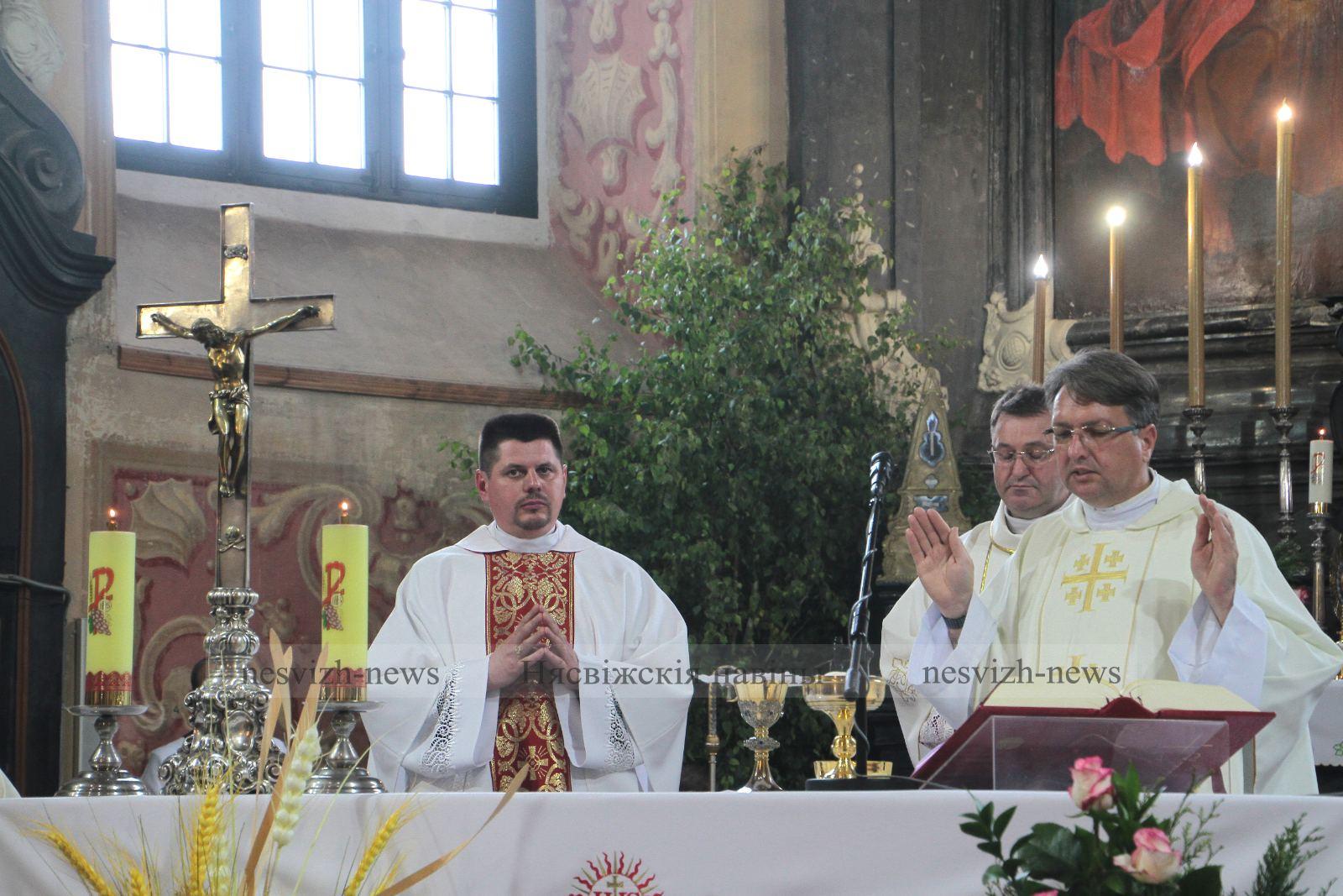 У чацвер у Нясвіжы ўрачыста адзначылі свята Божага Цела з удзелам арцыбіскупа Юзафа Станеўскага. Для яго гэта была першая на пасадзе Мінска-Магілёўскага Мітрапаліта ўрачыстасць Найсвяцейшага Цела і Крыві Хрыста. Праяўленнем веры нясвіжскіх католікаў стала Эўхарыстычная працэсія па вуліцах горада, якая адбылася на заканчэнне святой Імшы. Святары па чарзе неслі Хрыста ў Найсвяцейшым Сакрамэнце да чатырох прыпынкаў, першы з якіх быў каля гістарычнай Слуцкай брамы. У капліцы над брамай некалі знаходзіўся асабліва шанаваны тутэйшымі вернікамі абраз Найсвяцейшай Панны Марыі з Дзіцяткам Езусам на руках. Ад Слуцкай брамы працэсія скіравалася да Ратушнай плошчы, а адтуль прайшла па гістарычных вуліцах і новых кварталах горада. Пасля апошняга прыпынку, які адбыўся побач з парафіяльнай плябаніяй, пробашч парафіі ксёндз-канонік Пётр Шарко падзякаваў гарадскім уладам і службам парадку за бяспеку падчас шэсця. У святыні ўдзельнікі ўрачыстасці праславілі Бога спевам старажытнага гімна Te Deum, а на заканчэнне арцыпастыр удзяліў благаслаўленне Найсвяцейшым Сакрамэнтам жыхарам горада — старажытнага і заўсёды маладога. Іерарх заўважыў, што ў працэсіі ішло шмат дзяцей, хлопчыкаў і дзяўчынак, якія неслі рэлігійныя сімвалы і пасыпалі пялёсткі духмяных півоняў і іншых чэрвееньскіх кветак перад Эўхарыстычным Хрыстом. Іерарх таксама заахвоціў моладзь сваёй прысутнасцю рабіць Касцёл маладым, напаўняючы яго сваёй жыццярадаснасцю, юнацкім запалам і энтузіязмам. Арцыбіскуп Юзаф Станеўскі падзякаваў Богу за прыгожую ўрачыстасць, а таксама скіраваў словы падзякі пробашчу, нясвіжскім вернікам і ўладам горада. Прадстаўніком ад іх у свяце прыняў удзел намеснік старшыні райвыканкама Аляксандр Балцянкоў.