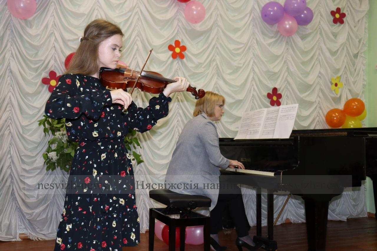 У мінулую пятніцу ўрачыста развіталіся з Нясвіжскай дзіцячай школай мастацтваў 47 яе выпускнікоў. Самае масавае — музычнае — аддзяленне школы скончылі 24 чалавекі, 9 — мастацкае, 8 — тэатральнае і 6 — харэаграфічнае.
