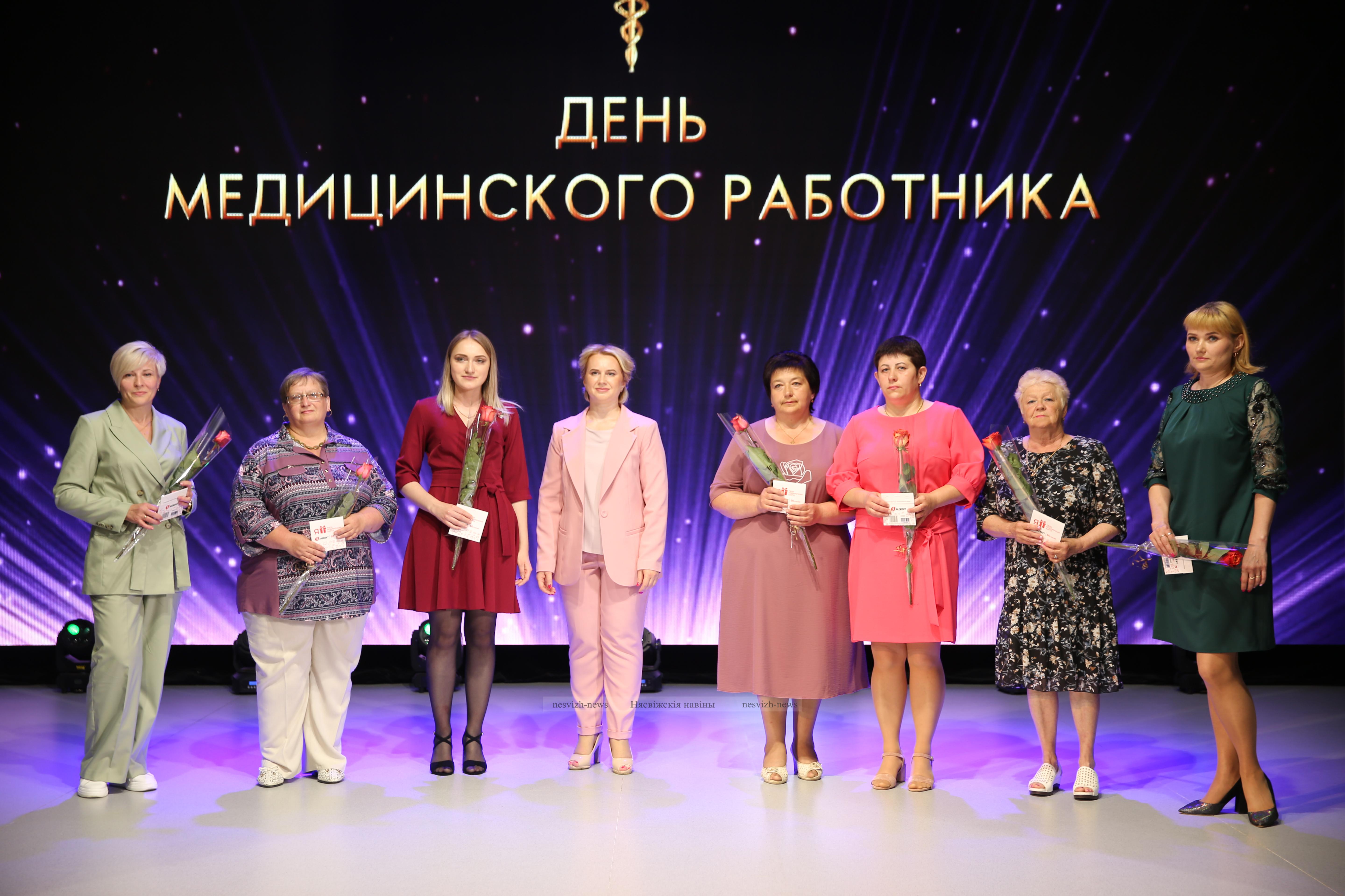 Виктория Викентьевна вручила Почетную грамоту главного управления по здравоохранению Минского облисполкома врачу-акушеру-гинекологу, заведующему гинекологическим отделением Виктории Вольницкой, Благодарность начальника главного управления по здравоохранению была объявлена врачу общей практики, заведующему Сновской амбулаторией Екатерине Король. За плодотворный и добросовестный труд в системе здравоохранения и в связи с Днем медицинского работника Почетной грамотой Несвижской ЦРБ были награждены врач-педиатр, заведующий педиатрическим отделением поликлиники Лилия Зубкова, врач-эндоскопист, заведующий эндоскопическим отделением Светлана Бутевич, врач-стоматолог-терапевт стоматологического отделения Ольга Дрозд, заведующий отделением анестезиологии и реанимации Юрий Шульга, врач-стоматолог-терапевт стоматологического отделения Ирина Чурило, заведующий Городейской городской больницей Дмитрий Сикорский, экономист планово-экономического отдела Светлана Евтух и другие работники медицинской сферы.