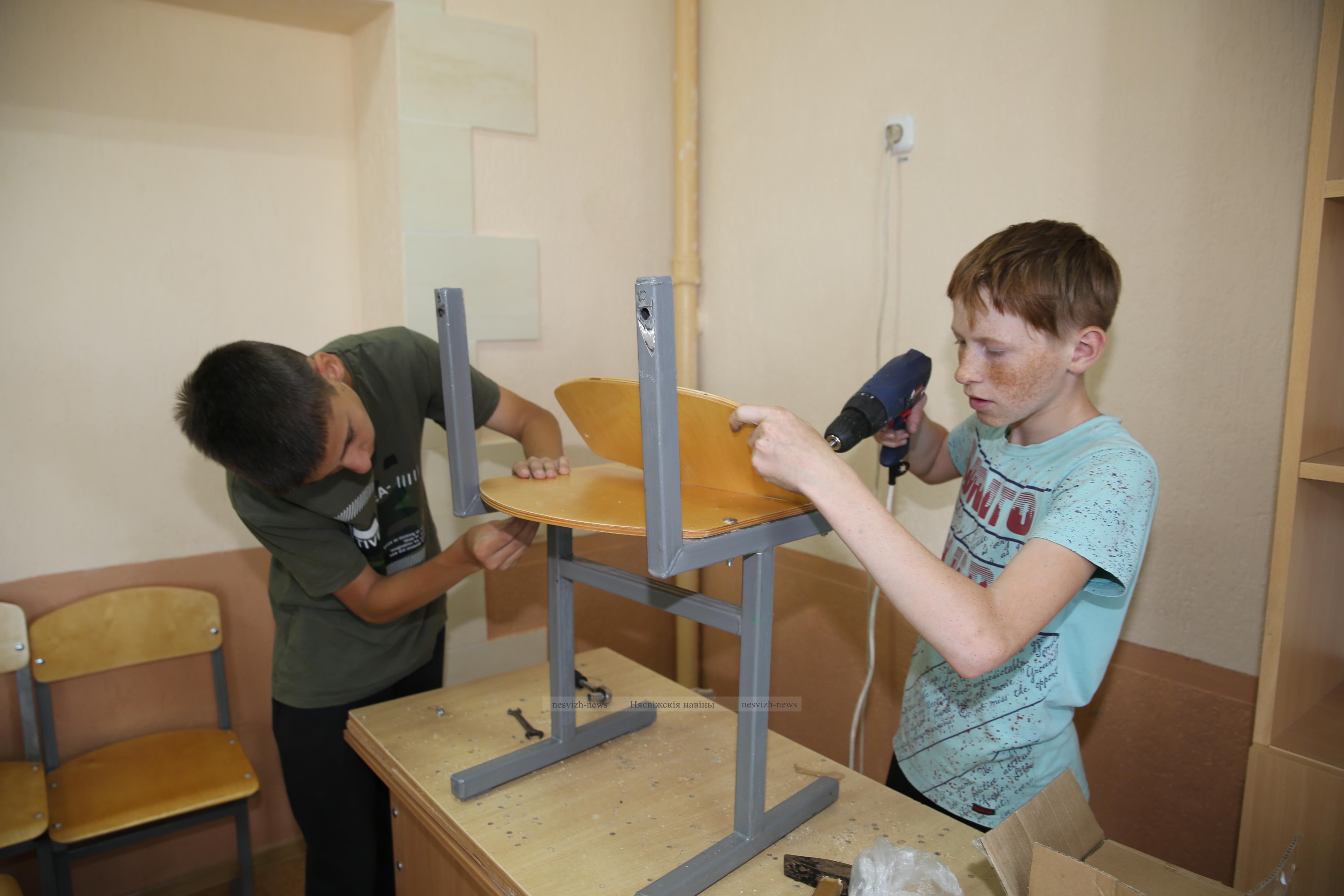 — Наш день обычно начинается с инструктажа по технике без- опасности, который проводит педагог. Потом приступаем к ремонту мебели в классах: выкручиваем старые болты, снимаем старые крышки сидений и столов и заменяем их на новые, — рассказывают школьники.
