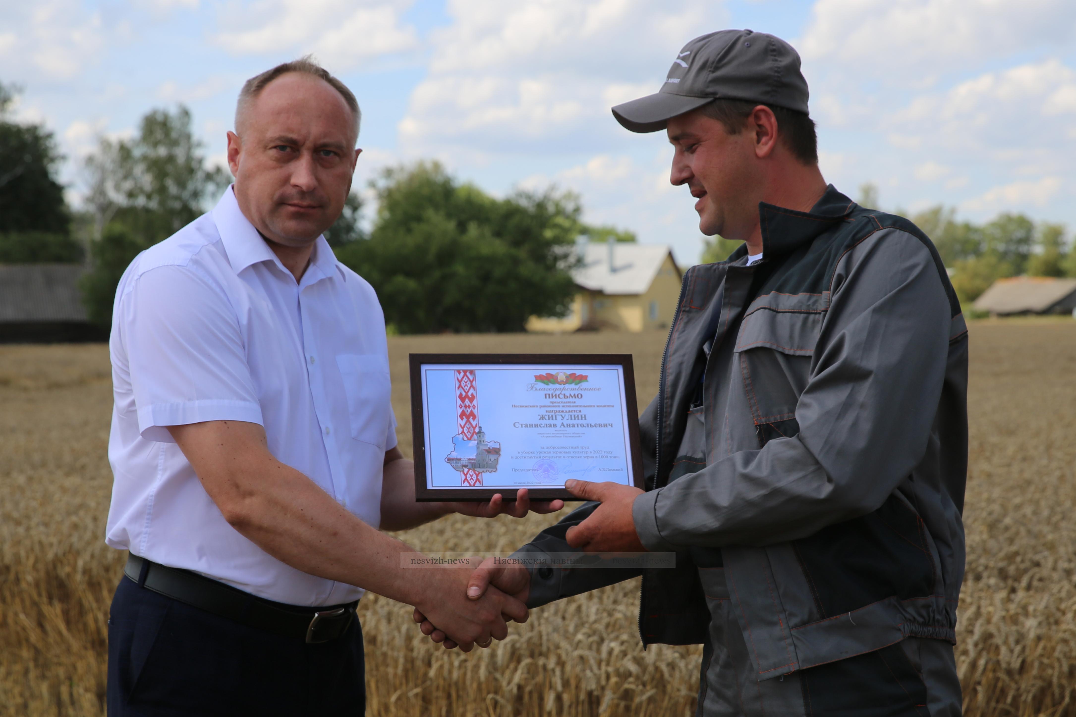 С трудовыми успехами героев страды прямо в поле поздравили председатель районного исполнительного комитета Александр Ломский, его заместитель Татьяна Жук и председатель райкома проф- союза работников АПК Светлана Антончик.