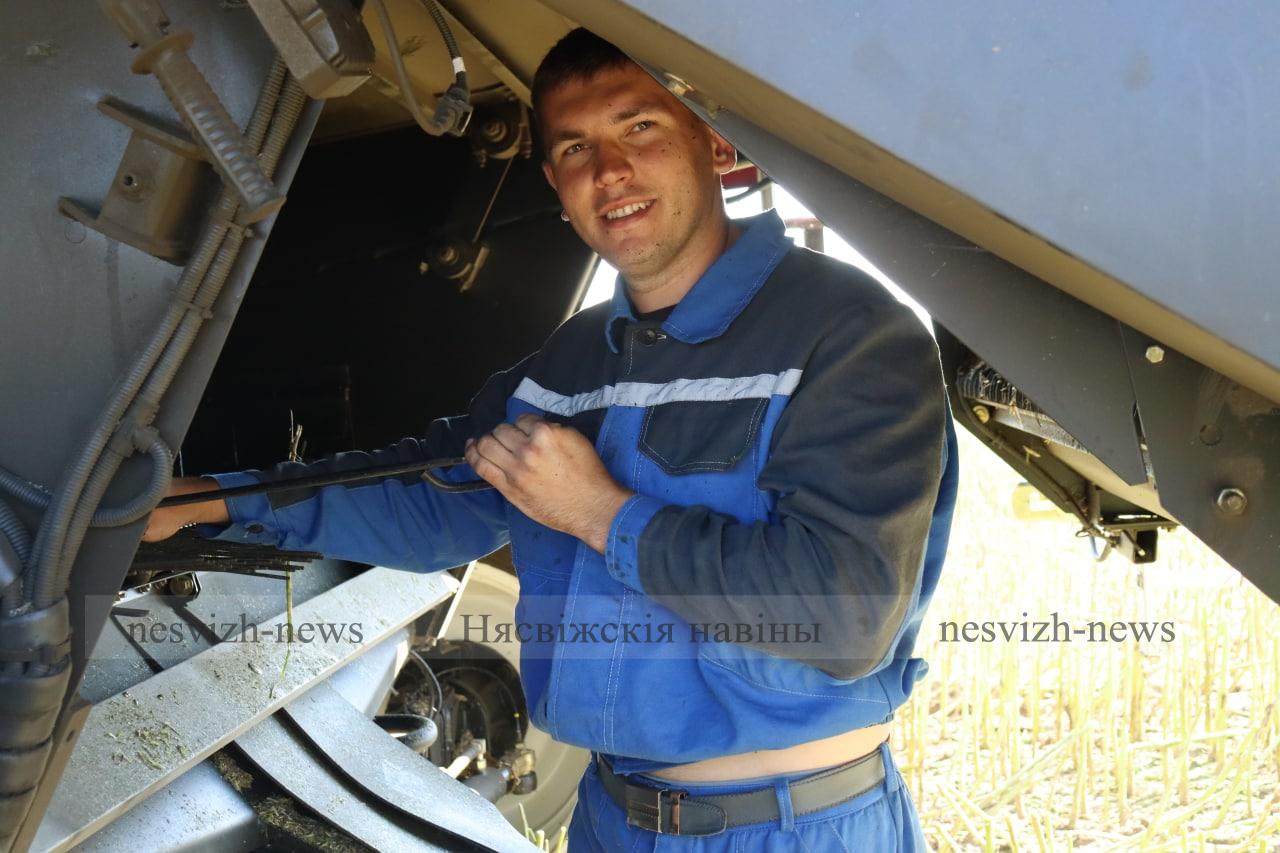 Хотя Сергей — самый молодой в задействованном экипаже, здесь его знают не первый год. Еще будучи школьником, помогал на здешнем мехдворе, а потом в студенческие годы (сначала был Жировичский государственный аграрно-технический колледж, затем — Белорусский государственный аграрно-технический университет: Сергей получил специальность «инженер-механик») проходил практику. После учебы вернулся в Снов, и вот уже второй год трудится в хозяйстве по специальности. И теперь, в горячую пору, был переведен в комбайнеры.