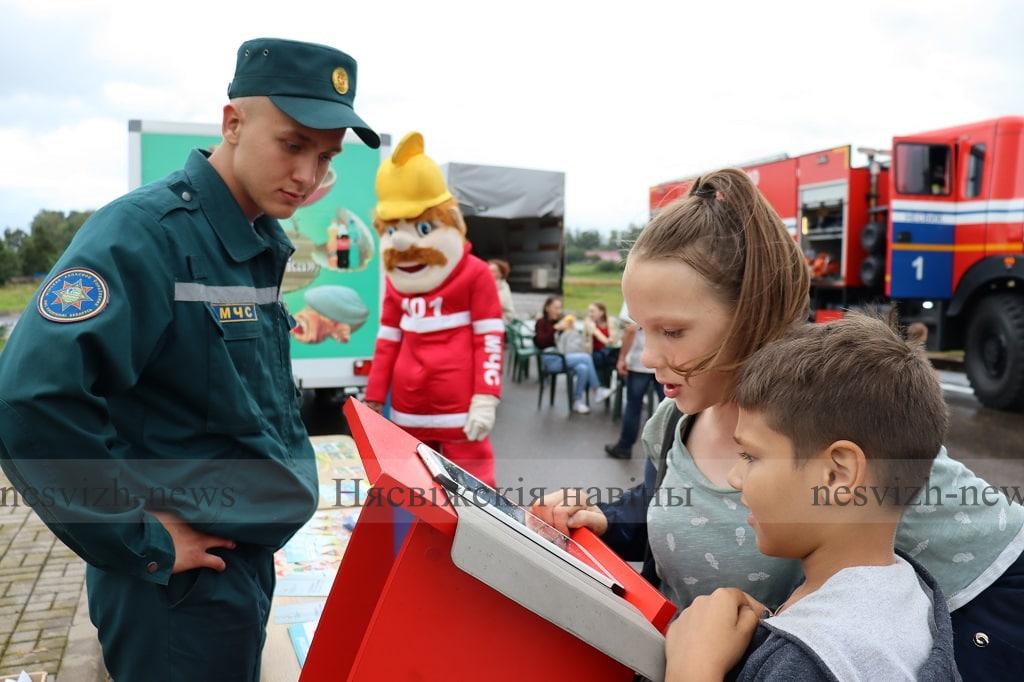 Для сельчан были организованы интерактивные площадки с большим количеством тематических конкурсов, игр, продемонстрирована аварийно-спасательная техника, работали торговые ряды, аттракционы, фотозона, а также подготовлен праздничный концерт. В непринужденной обстановке гости мероприятия повторили и закрепили знания в области пожарной безопасности. С интересом находили они опасности в квартире, причем справились с заданиями очень хорошо. Также поиграли в игру «Безопасная эвакуация», проверили как работает автономный пожарный извещатель и узнали о возможности использования мобильного приложения «МЧС Беларуси: помощь рядом».