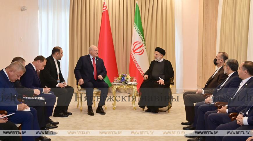 Президент Беларуси Александр Лукашенко в Самарканде в преддверии заседания Совета глав государств — членов ШОС провел двустороннюю встречу с Президентом Ирана Эбрахимом Раиси, передает корреспондент БЕЛТА.