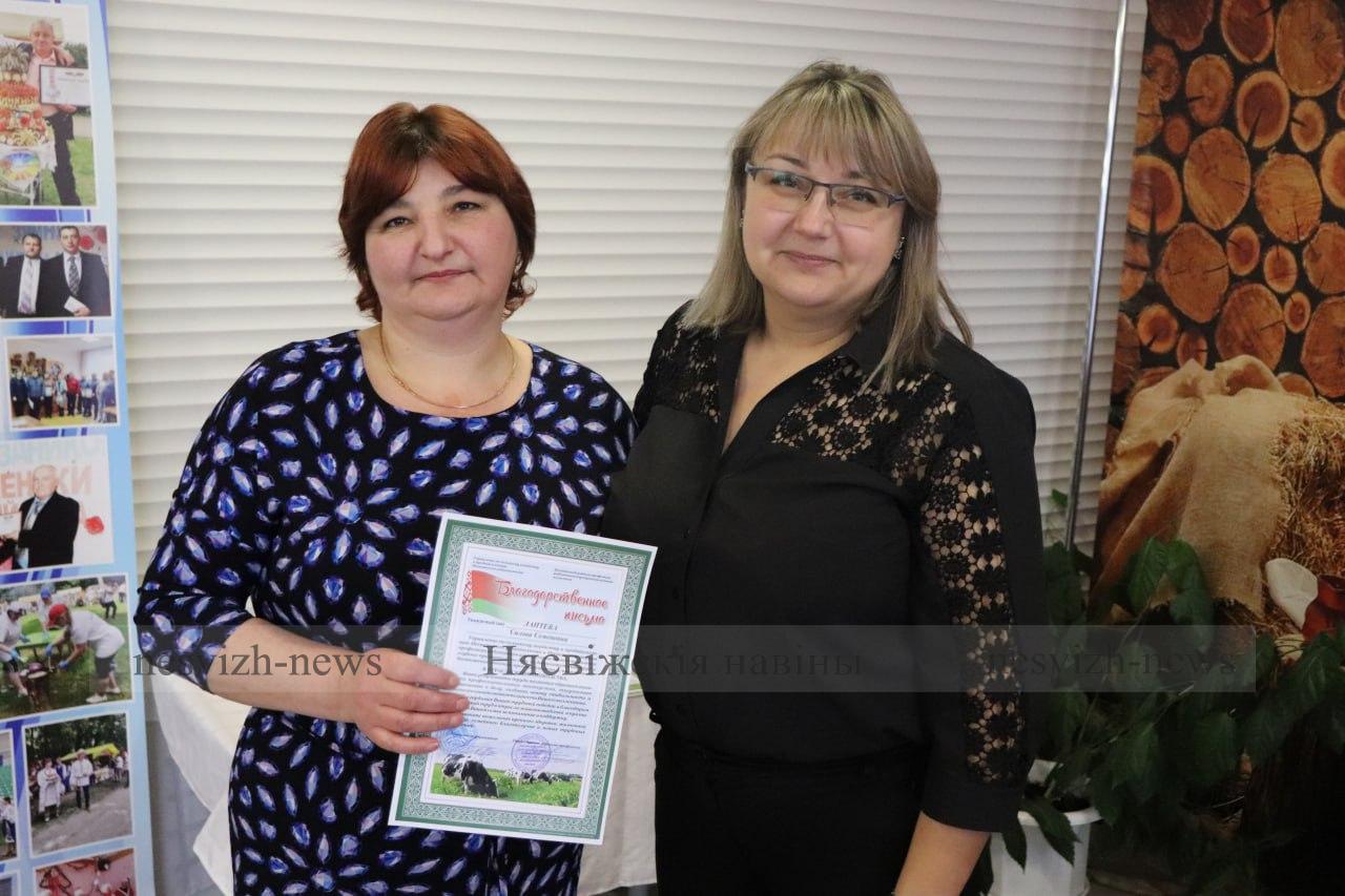 Разам з Таццянай Мікалаеўнай Святлана Анатольеўна ўзнагародзіла 18 работнікаў гаспадаркі падзячнымі лістамі ўпраўлення па сельскай гаспадарцы і харчаванні райвыканкама і райкама прафсаюза АПК. Узнагароды яшчэ дзесяці працаўнікам жывёлагадоўчай галіны ад дырэкцыі ААТ “Лань-Нясвіж” уручыў дырэктар сельгаспрадпрыемства Сяргей Сямашка.