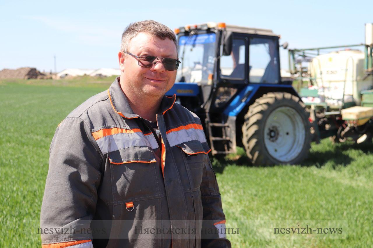 — Пераехалі сюды з Чэрвеньскага раёна. Арганізацыю работы, калектыў ацэньваю станоўча. Працуем з 8-і гадзін да 20-і. За шкодныя ўмовы мне ідзе даплата, выдаюць малако, — расказаў нам Антон Жук. На трактары МТЗ-82 з апырсквальнікам S-330 ён праходзіць па 120 гектараў у дзень. Апрацоўвае пасевы рэгулятарам росту, фунгіцыдам імікраэлементам — у даным выпадку марганцам. Гэты аграпрыём у значнай ступені ўплывае на будучы ўраджай. І механізатар стараецца. У пары з ім працуе вадзіцель Сяргей Кузьміч, падвозіць ваду. На хімахоўнай рабоце заняты таксама механізатар Аляксандр Дземідовіч. Пасля збожжавых яны пойдуць на пасевы азімага рапсу, буракоў, кукурузы, яравога ячменю.