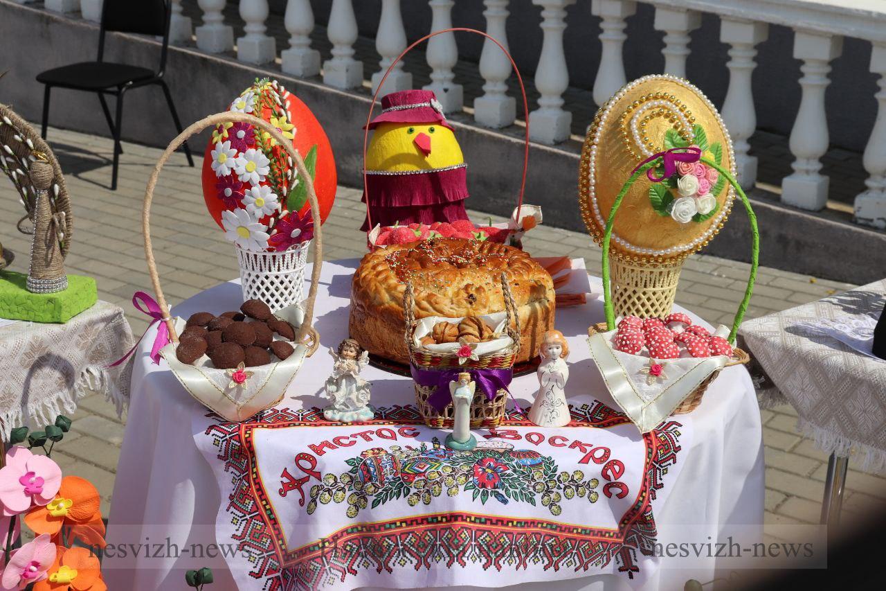 Сегодня в Несвиже прошел V районный фестиваль «Пасхальный свет души». На открытой площадке возле районного центра культуры зрителей встретили выставка-конкурс кулинарного творчества на лучший пасхальный кулич и лучшее пасхальное яйцо, а также выставка-ярмарка работ мастеров декоративно-прикладного творчества «Яечак сёлета багата — шчыра сустракаем свята».