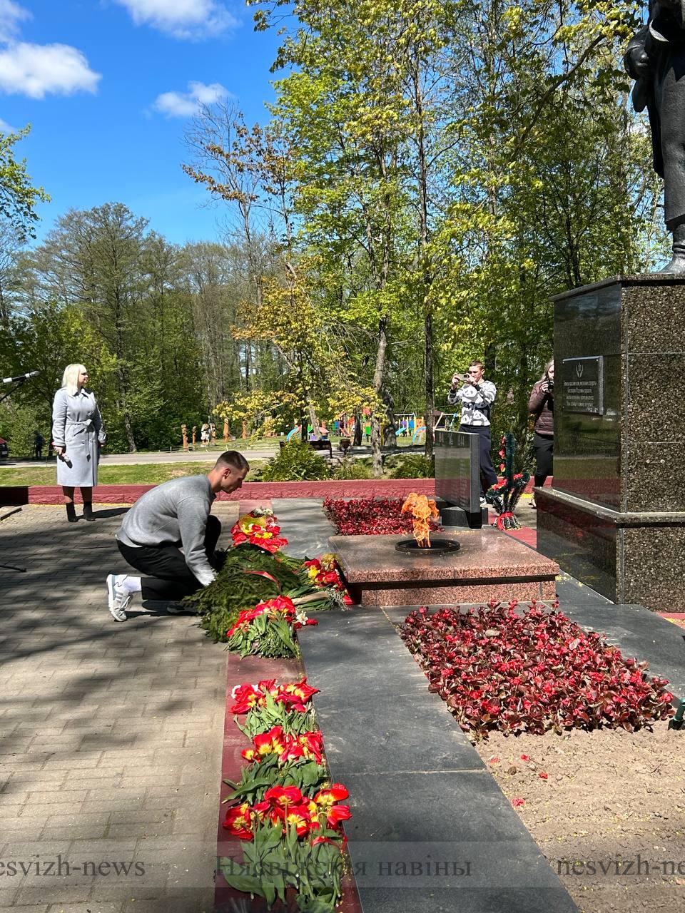 Участники митинга возложили цветы к Братской могиле и почтили память минутой молчания. Также на митинге выступили с песнями работники Несвижского районного центра культуры, чтобы поддержать собравшихся людей и сделать этот день более светлым.