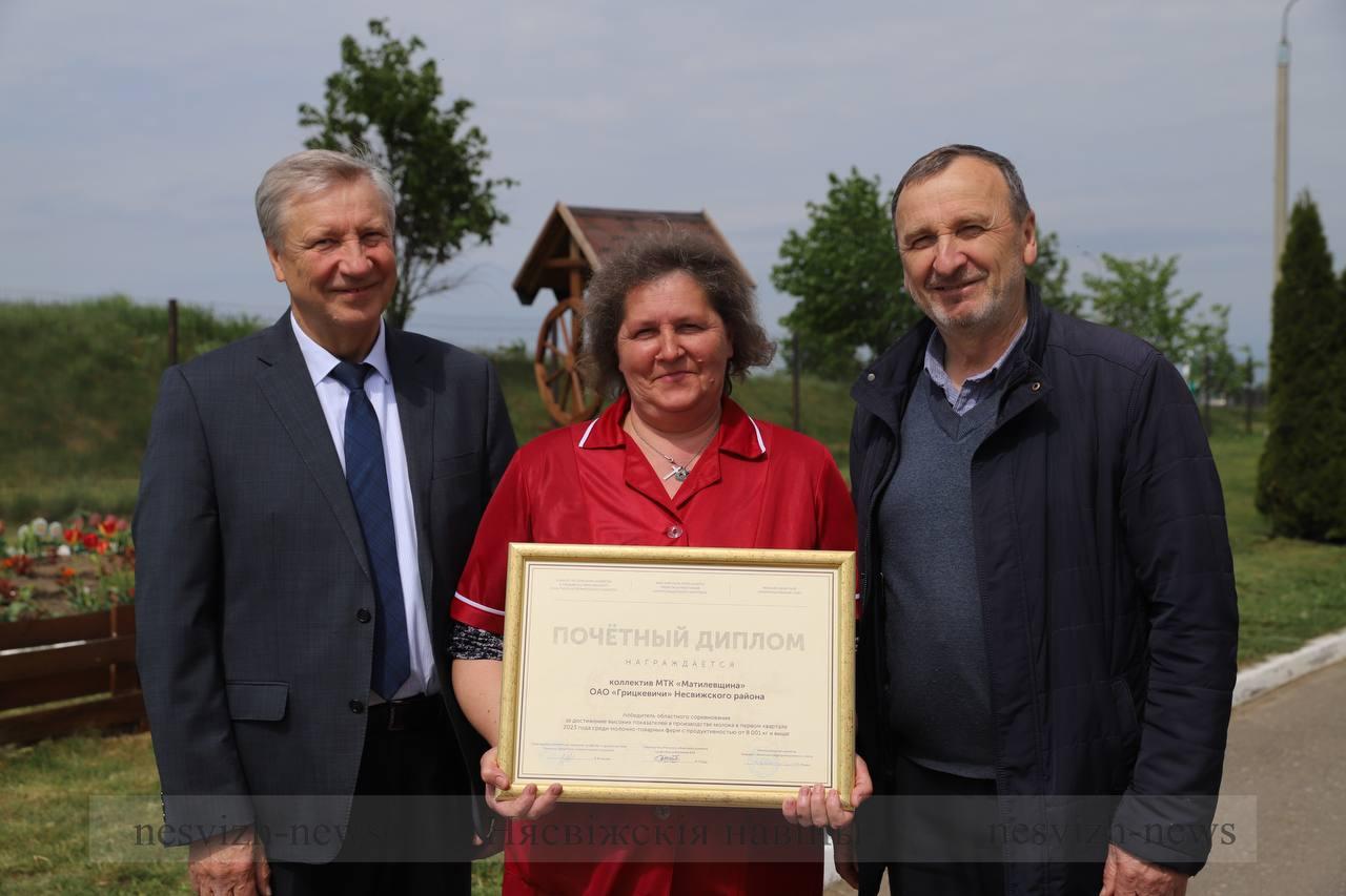 Бригадир производственной бригады в животноводстве Валентина Минич получила из рук Генриха Мисюка «золотой» диплом. Коллектив МТФ также удостоен денежного приза в размере 45 базовых величин.