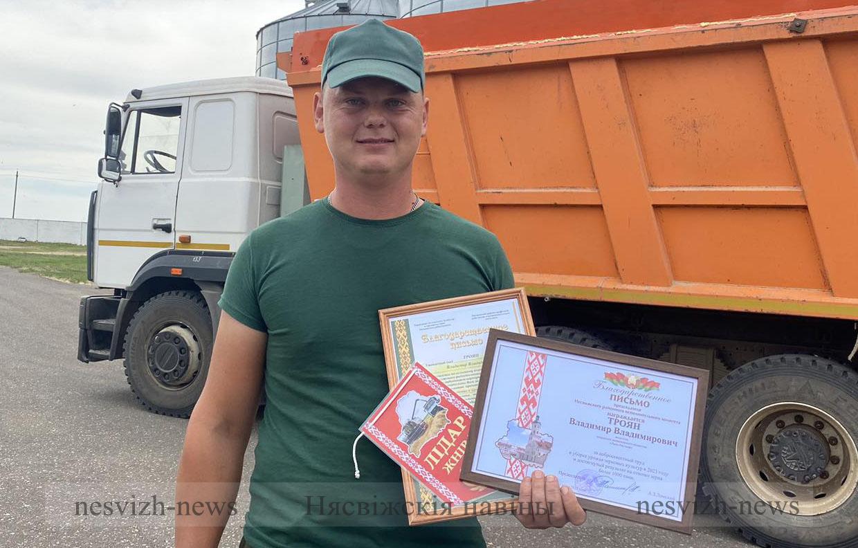 Сегодня в Несвижском районе поздравляли первого водителя, перевезшего более тысячи тонн зерна.