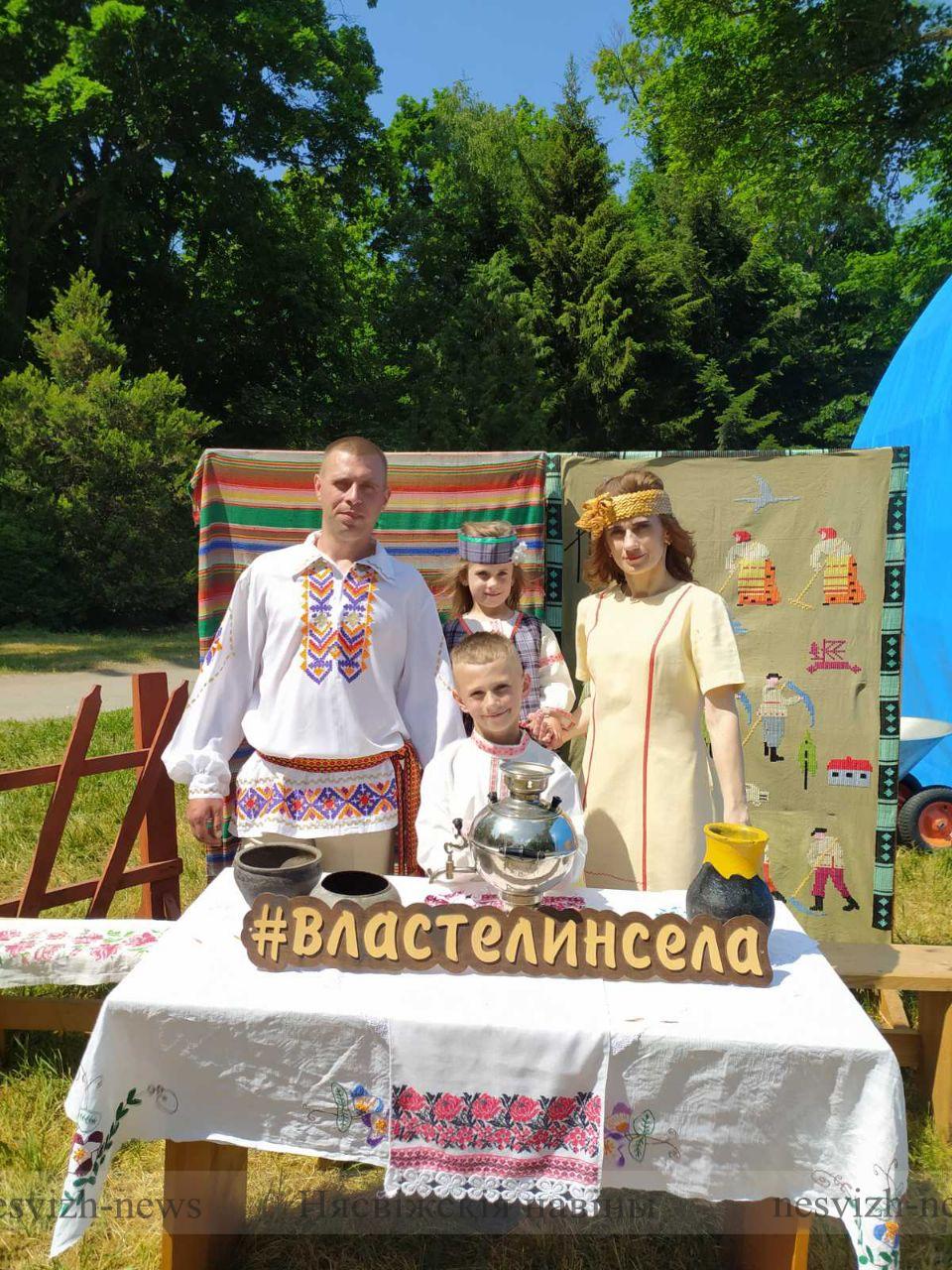 На выставке подворий семье Клим помогали и работники Несвижского РЦК, проводившие мастер-классы по росписи деревянных лопаток и по изготовлению традиционных белорусских кукол-мотанок, и сотрудники Несвижской центральной районной библиотеки им. П. Пронузо. Они представили краеведческую игру «Морской бой», но не обычный, а с местными достопримечательностями.