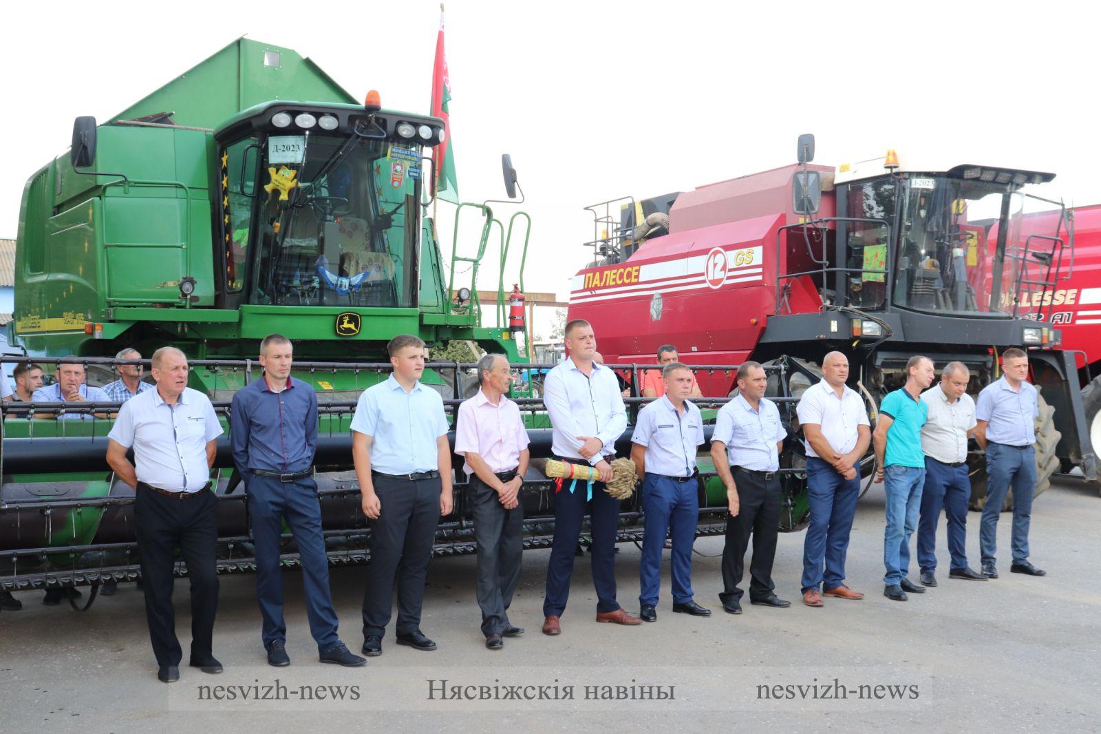 Сімвал паспяховага заканчэння ўборкі — апошнія дажыначныя снапы — намесніку дырэктара дзяржаўнага прадпрыемства “Эксперыментальная база Свеклавічная” Андрэю Вітко і галоўнаму аграному Яўгенію Саліце уручылі пераможцы жніва камбайнер Радыён Панкрат і вадзіцель Генадзь Янкоўскі.