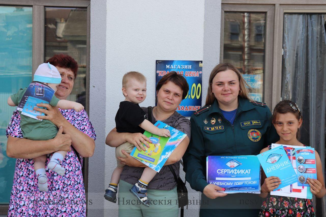 Подготовка ребенка к школе является серьезной и незаменимой задачей для каждого родителя. В этот день посещение местных магазинов стало возможностью не только для заполнения школьного рюкзака, но и для приобретения знаний о безопасности жизнедеятельности. Яна Валерьевна, находя индивидуальный подход к каждому ребенку, провела обучающие беседы, игры, а также проверила уже имеющиеся у них знания ОБЖ и умения вызывать пожарных. После успешной сдачи «экзамена» инспектор вручила семьям дневники безопасности, чтобы родители могли провести самостоятельно домашнюю работу со своими детьми и повторить изученный ранее материал в области базовых принципов безопасности, а также сертификат об успешном прохождении экзамена по безопасности 2023 «К УЧЕБНОМУ ГОДУ ГОТОВ». Кстати, во время проверки знаний многие дети отмечали, что были в центре безопасности Несвижского РОЧС, где Яна Валерьевна разбирала с ними правила безопасного поведения. Так, например, четверо детей точно знают, что не стоит тушить пламя самостоятельно, если оно больше футбольного мяча.