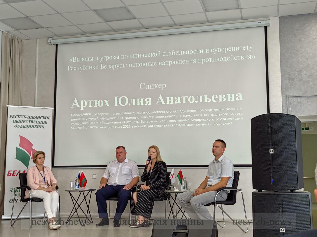 Как рассказала председатель Несвижской РОО «Белая Русь» Алла Тронца, в нынешнем году тема для обсуждения – «Вызовы и угрозы политической стабильности и суверенитету Республики Беларусь: основные направления противодействия».