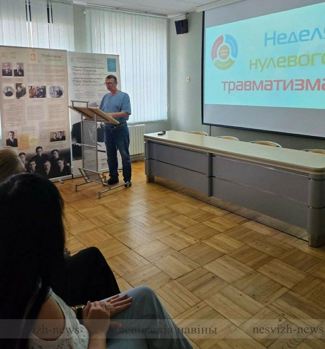 8 сентября в Несвижской центральной районной библиотеке им. П.Пронузо прошел Единый день информирования по охране труда «Нулевой травматизм». Перед коллективом библиотеки выступил заместитель директора по хозяйственной части Сергей Кучук.