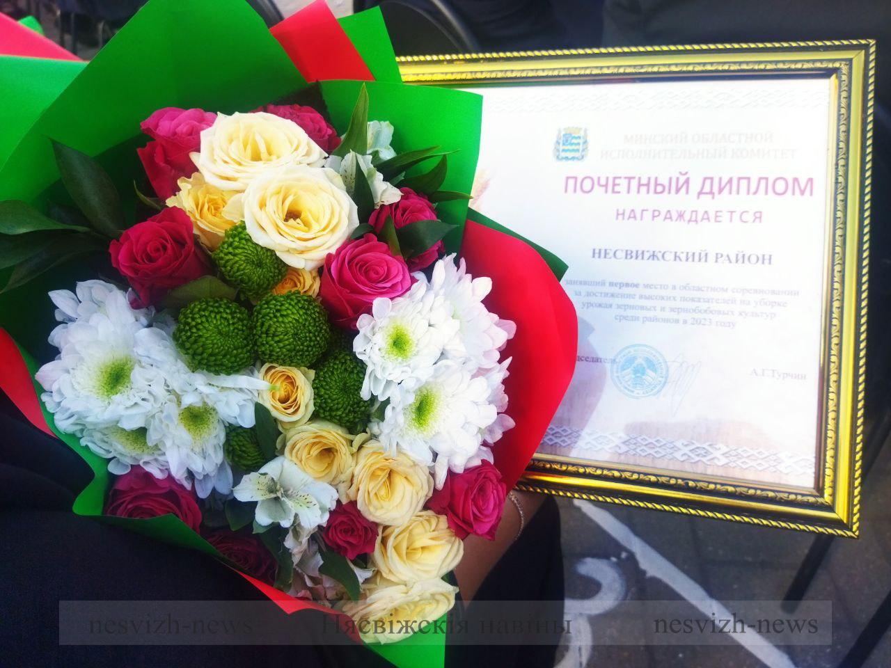 И вот оно главное событие сегодняшнего дня – Несвижский район занял первое место в областном соревновании за достижение высоких показателей на уборке урожая зерновых и зернобобовых культур среди районов в 2023 году!!!