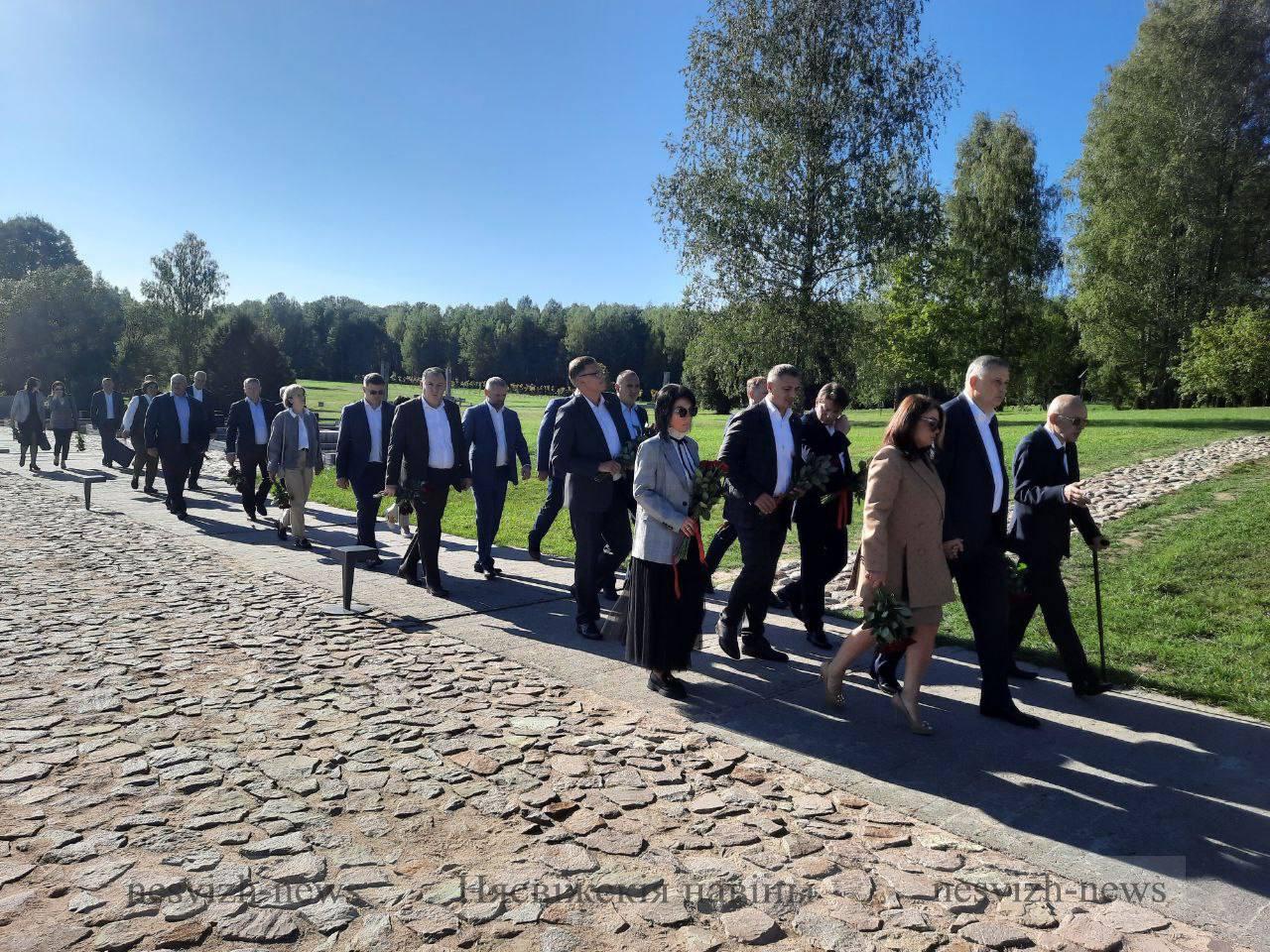 Гости из России возложили цветы к скульптуре «Непокоренный человек» и вечному огню, а также посетили новый музей и храм в честь Рождества Пресвятой Богородицы, которые открылись в этом году.