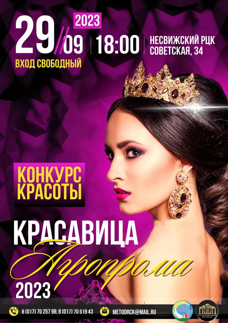 29 сентября в Несвиже пройдет районный конкурс красоты «КРАСАВИЦА АГРОПРОМА-2023». Организаторами конкурса выступают отдел идеологической работы, культуры и по делам молодежи райисполкома, Несвижская районная организация профсоюза работников АПК и Несвижский районный совет агропромышленного союза.