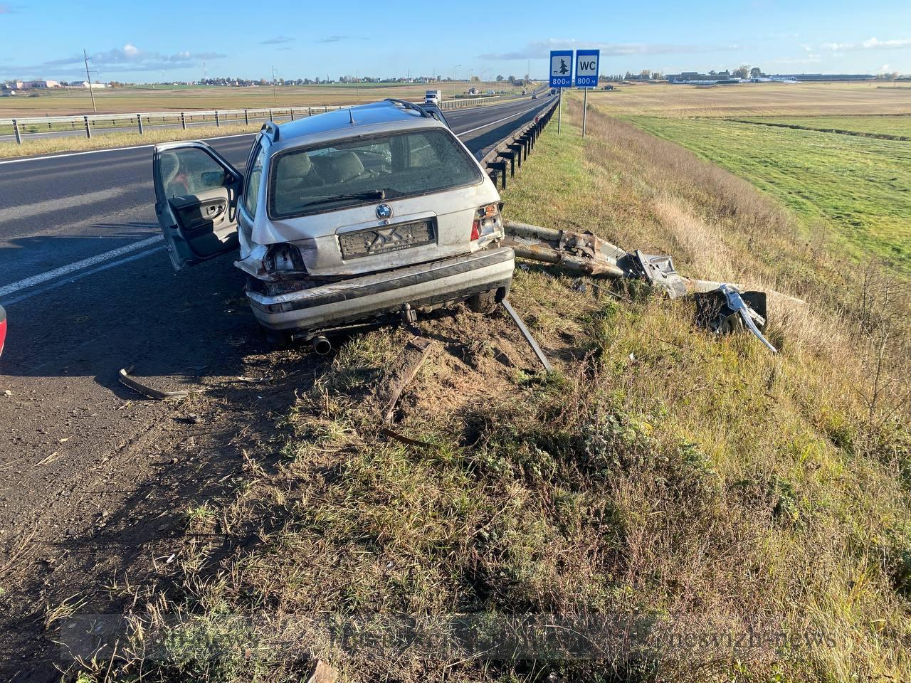 17.10.2023 года около 07.00 часов на 255 км а/д М-1, 56-летний водитель, управляя автомобилем «БМВ», двигаясь в направлении г. Минска, не учел особенность и состояние транспортного средства, в результате чего автомобиль ушел в неуправляемый занос и совершил наезд на металлическое ограждение дороги. В результате дорожно-транспортного происшествия 54-летнему пассажиру причинены различные телесные повреждения, с которыми госпитализирована в УЗ «Несвижская ЦРБ».