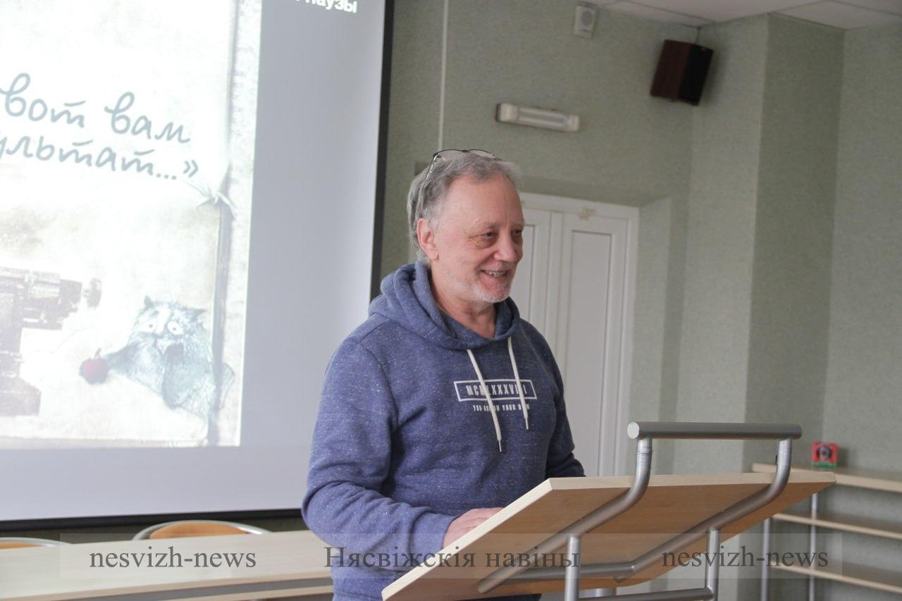 А зусім нядаўна Уладзімір Васільевіч прыйшоў на сустрэчу з юнымі ўдзельнікамі сумеснага праекта “Парады з вуснаў несвіжан” і адначасова наведвальнікамі клуба духоўна-маральнага выхавання “Ноеў каўчэг”, якая адбылася ў Нясвіжскай цэнтральнай раённай бібліятэцы імя Паўлюка Пранузы. Прыйшоў, як і на сустрэчу з вядомымі артыстамі эстрады, таксама з тоненькай папачкай, у якой знаходзіўся толькі адзін яго твор, апавяданне “Ибо не знаете ни дня ни часа…» (Размышление по одному печальному поводу). У гэтым апавяданні — і сэнс жыцця, і галоўныя каштоўнасці, на якія павінны арыентавацца ўсе мы. А пасля пісьменнік адказаў на пытанні рабят. Юнакі і дзяўчаты не прамінулі дакрануцца і да некаторых біяграфічных момантаў Уладзіміра Васільевіча.