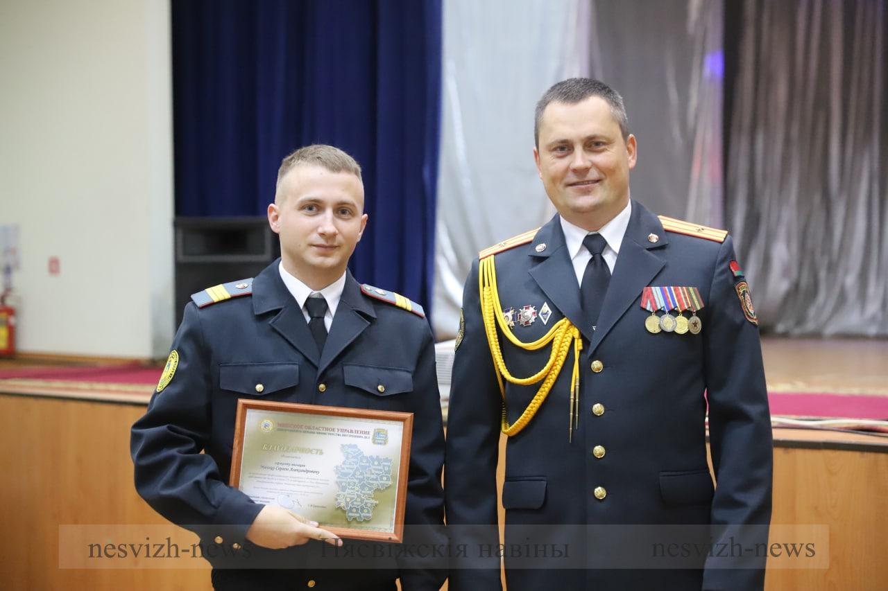 За проявленную профессиональную инициативу и обеспечение высокой эффективности труда в честь празднования Дня образования подразделений охраны Министерства внутренних дел Александр Станиславович вручил награды Несвижского районного исполнительного комитета прапорщику милиции Вадиму Золотарю, прапорщику милиции Денису Праженику, охраннику подразделения сторожевой охраны Несвижского отдела Департамента охраны Ивану Русиновичу и контролеру КПП 4-го разряда Несвижского отдела Департамента охраны Олегу Цветкову.
