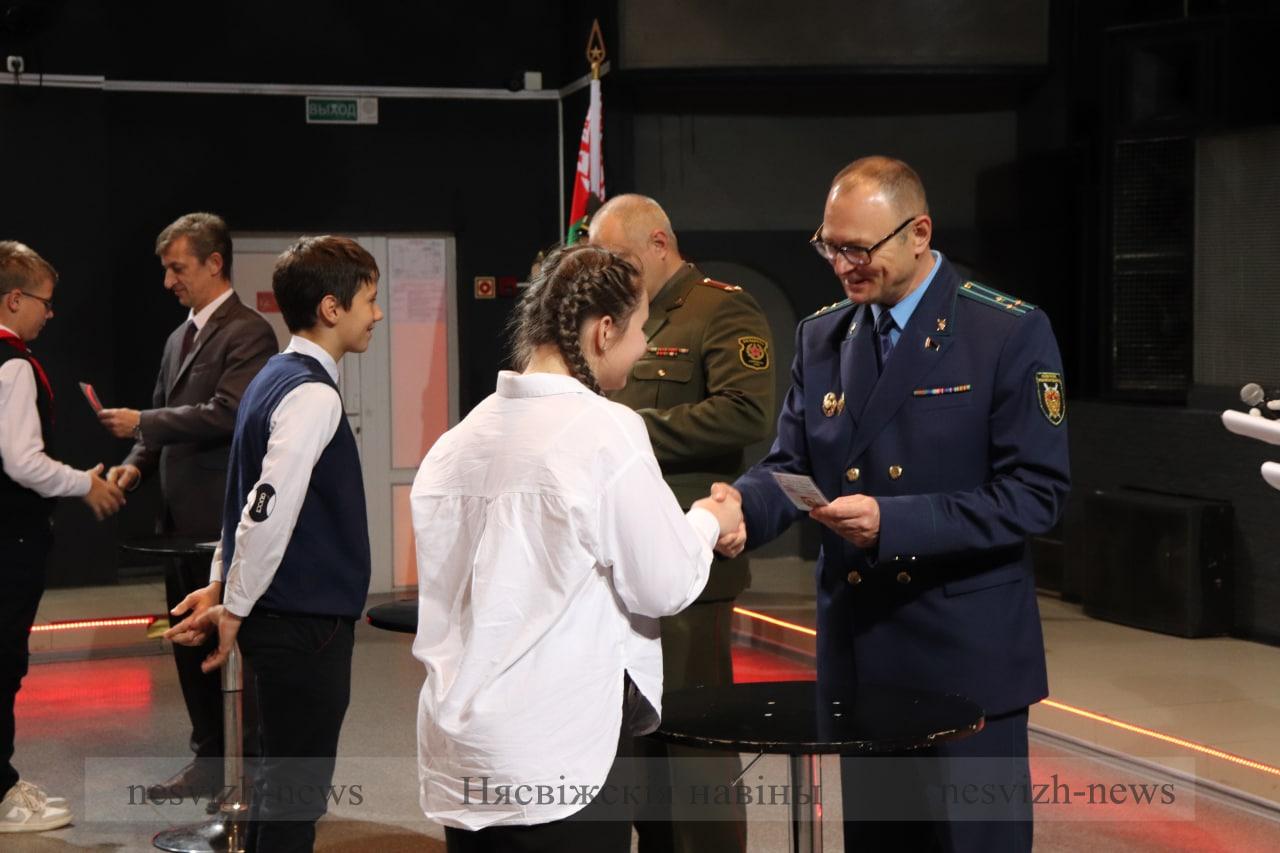 На торжественном собрании были награждены опытные участники «Наследия». Кирилл Деханд, Даниил Аксак и Вероника Тронца получили Грамоты военного комиссариата Несвижского и Копыльского районов, а Полина Сливец, Олеся Чуро и Кирилл Бакач — Почетные грамоты областного совета ОО «Белорусский союз офицеров».