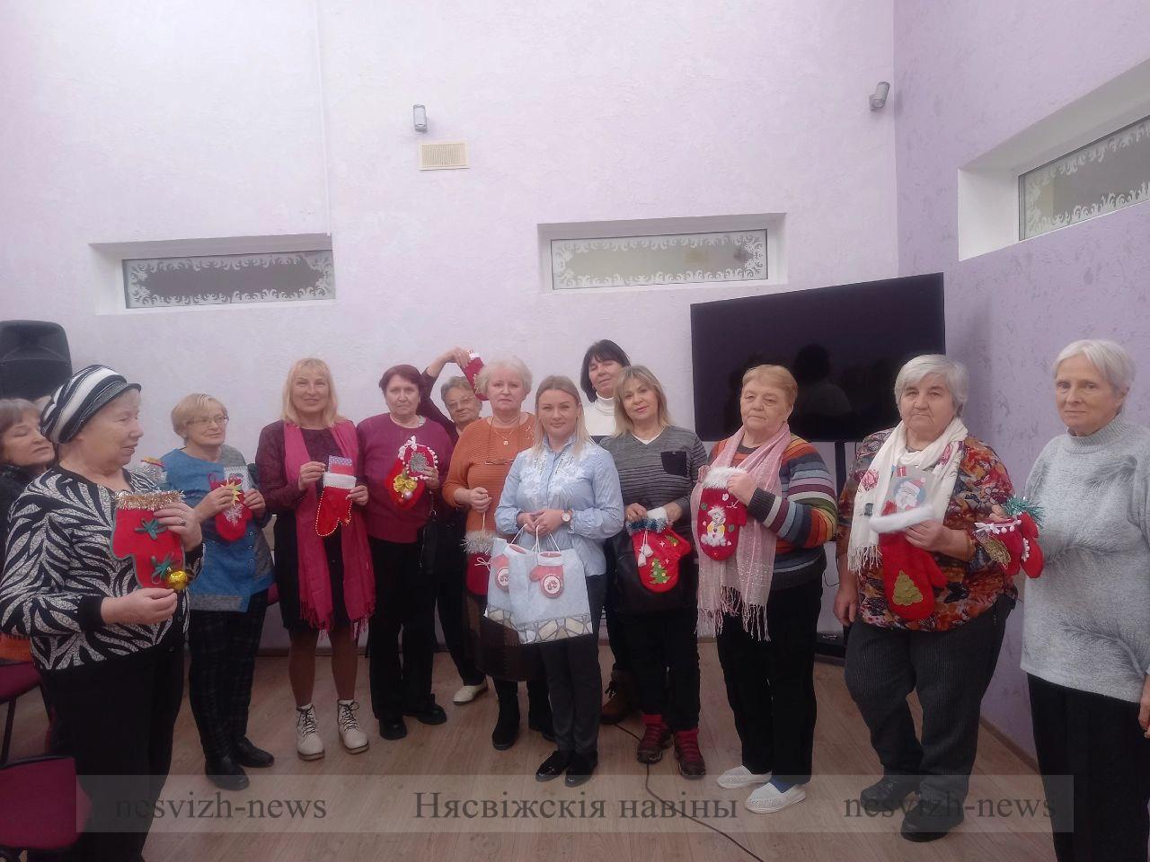 В теплой обстановке Снегурочкаи Дед Мороз играли, пели песни из советских фильмов, а также танцевали с представителями прекрасного возраста. Учащиеся вокальный студии ЦДТ под руководством Игоря Суховея подарили присутствующим свои музыкальные подарки. Незабываемым стало поздравление от тимуровцев СШ № 4 г.Несвижа вместе с педагогами-организаторами учреждения Юлией Кабарихой и Яной Кельмуц, которые поздравили участников мероприятия и подарили им сувениры и рукавички, сделанные своими руками в рамках благотворительной акции «Чудеса на Рождество». Замечательным завершением праздника стал совместный хоровод и вокальный номер от Снегурочки. После мероприятия все гости были приглашены на чаепитие со сладкими подарками, которые вручила председатель РС ОО «БРПО» Татьяна Жучко.