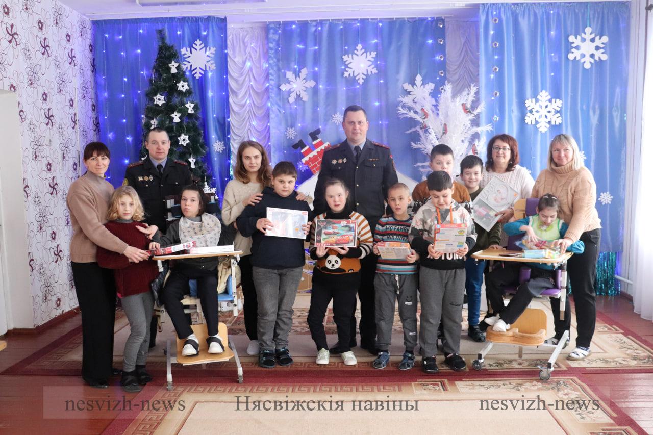 Так, сегодня по сложившейся доброй традиции начальник Несвижского отдела Департамента охраны Министерства внутренних дел Республики Беларусь майор милиции Александр Трусевич и помощник начальника Несвижского отдела Департамента охраны Министерства внутренних дел Республики Беларусь по идеологической работе и кадровому обеспечению капитан милиции Вадим Гутко посетили ЦКРОиР Несвижского района. Сотрудники милиции поздравили ребят с новогодними праздниками и вручили им полезные подарки – развивающие дидактические игры.