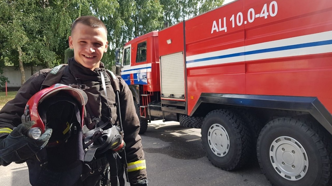 Владислав служит в Несвижском РОЧС четвертый год. Начинал диспетчером центра оперативного управления Центра оперативного управления Несвижского райотдела по ЧС, а в сентябре 2021-го перешел на должность водителя.