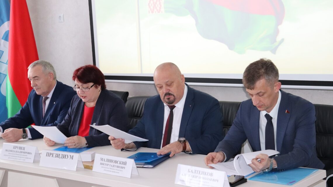Места в президиуме заняли председатель Несвижского районного объединения профсоюзов Михаил Жигунов, председатель Несвижской районной организации Белорусского профсоюза работников образования и науки Людмила Крупец, председатель Минского областного объединения профсоюзов Виктор Малиновский, заместитель председателя Несвижского районного исполнительного комитета Александр Балтенков.