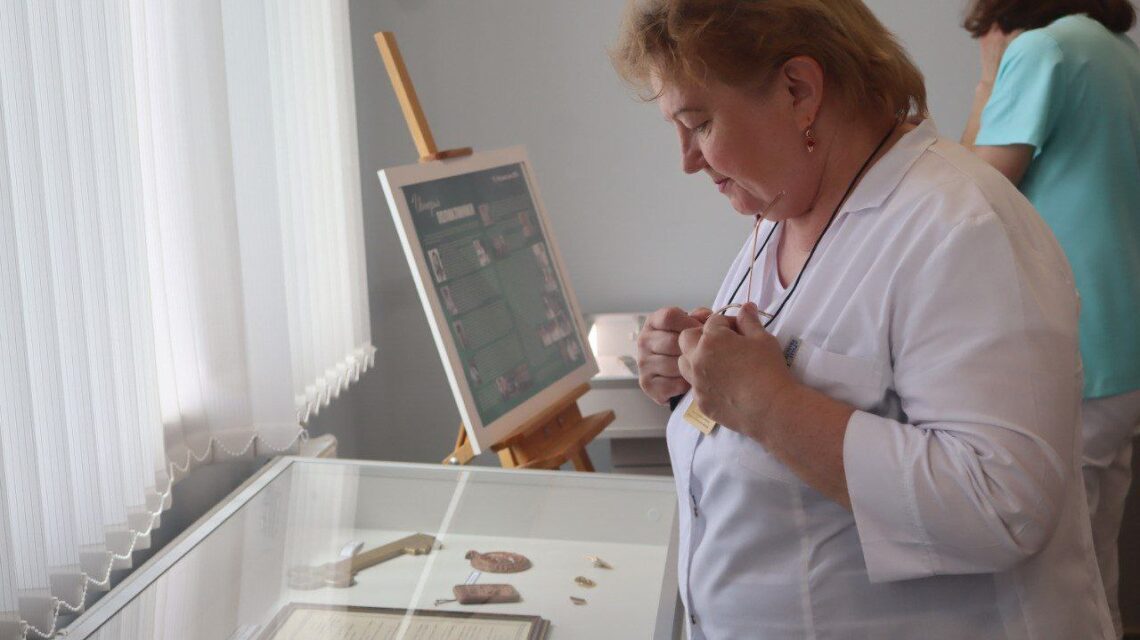 Стеклянные шприцы, железные иглы, медицинские шкафы, документы, свидетельства, фотографии, врачебные инструменты, спецодежда, медицинская атрибутика, все, чем пользовались медицинские работники в течении 20 и более лет собраны в музейной комнате.