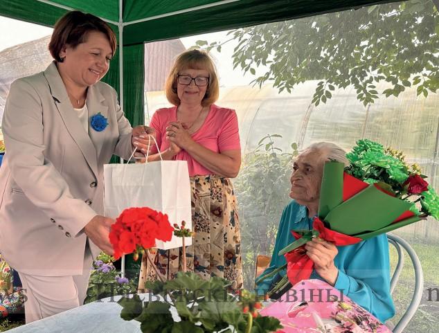 Накануне Дня Независимости Республики Беларусь представители районной власти и общественных объединений, а также работники культуры с цветами и подарками приехали поздравить с вековым юбилеем