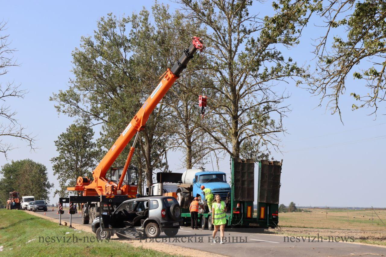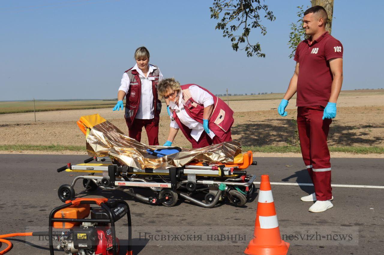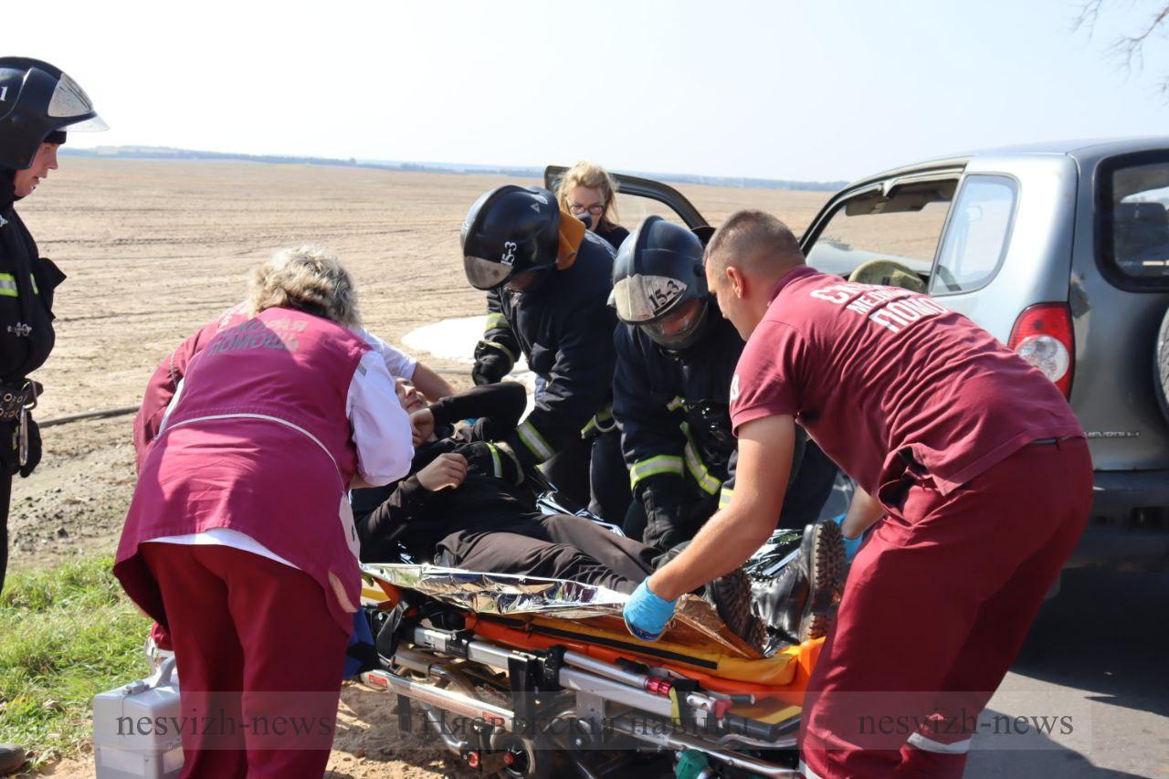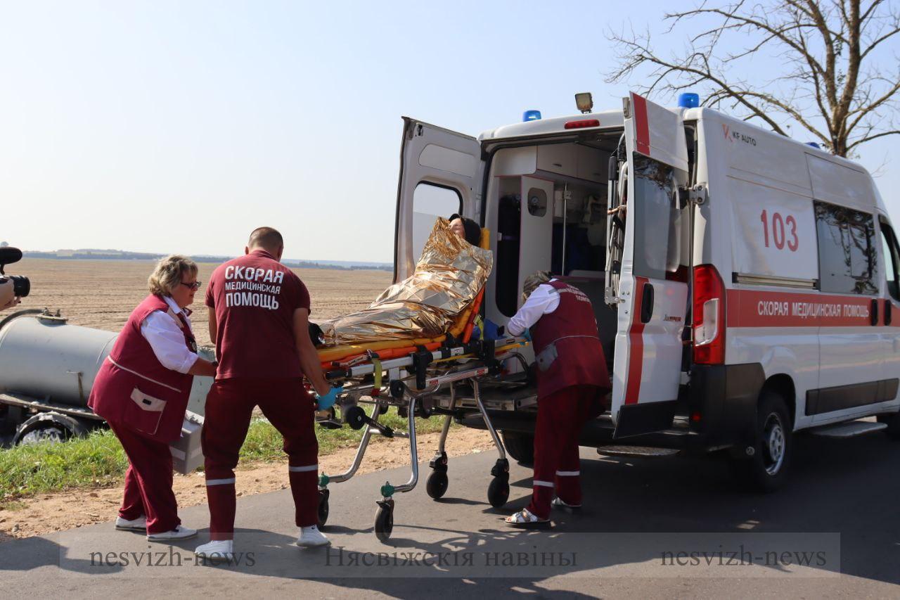 — Подразделения МЧС создали «пенную подушку», чтобы исключить загорание вытекающего из бака грузовика топлива, — проинформировала официальный представитель Минского областного управления МЧС Анастасия Швайбович. — Другая часть спасателей приступила к деблокировке водителя легкового автомобиля. В результате удара дверь заклинило, мужчину прижало приборной панелью. Как только работники МЧС достали водителя, за дело взялись медики. Пульс, давление, зрачки — и спасенный уже на носилках направляется в карету скорой помощи. Одновременно с подразделениями МЧС и работниками скорой к работе приступили и дорожники: распиловка упавших деревьев, расчистка проезжей части — работы проводили оперативно, проезд ограничили сотрудники ГАИ.