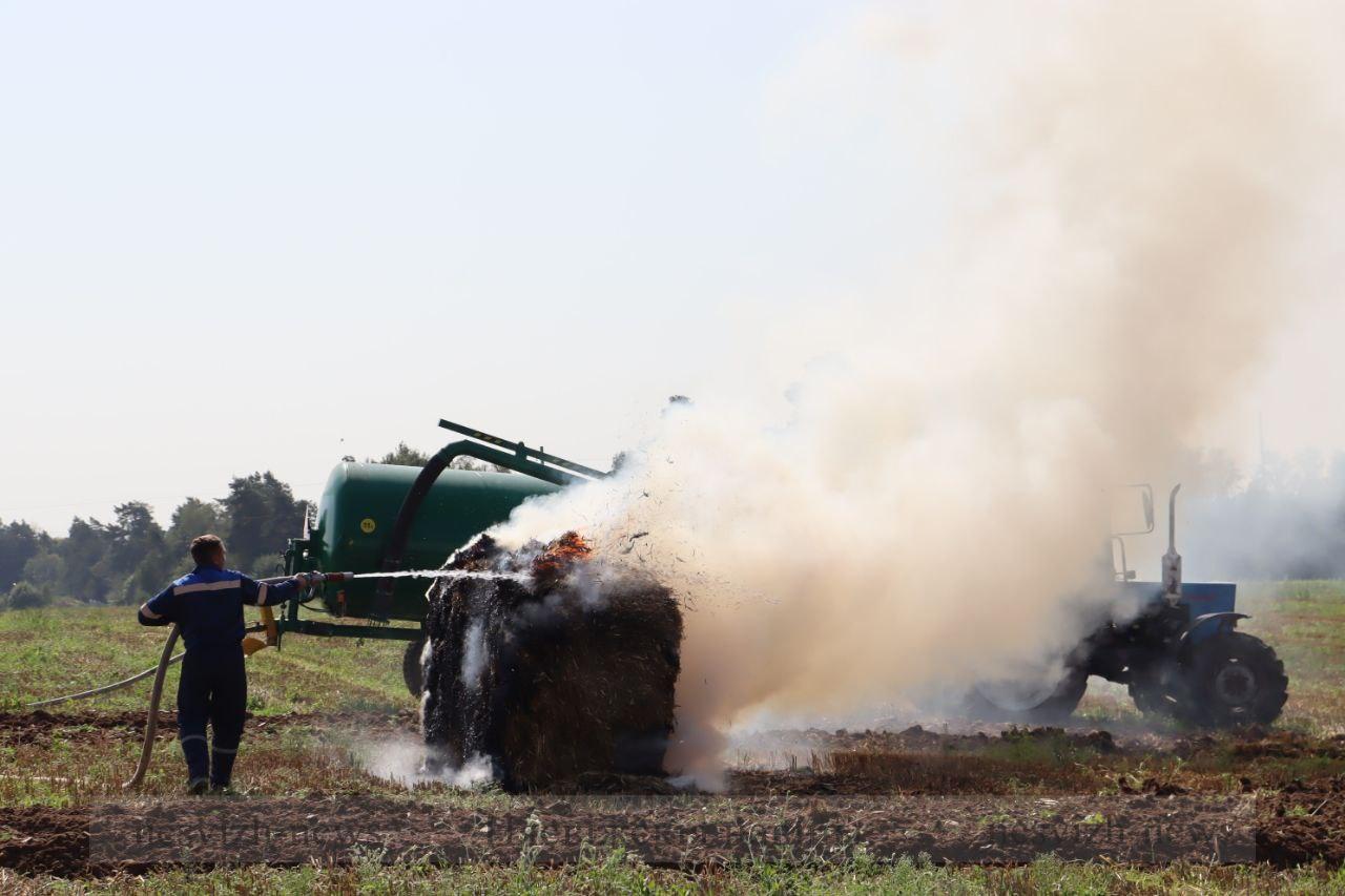 На следующей вводной работники сельхозпредприятия и лесники справлялись с загоранием сухой травы. Сильный ветер мог перебросить огонь на торфяник и лес. Опашка места пожара позволила предотвратить распространение пламени, а оперативные действия специалистов — ликвидировать загорание в экосистеме.