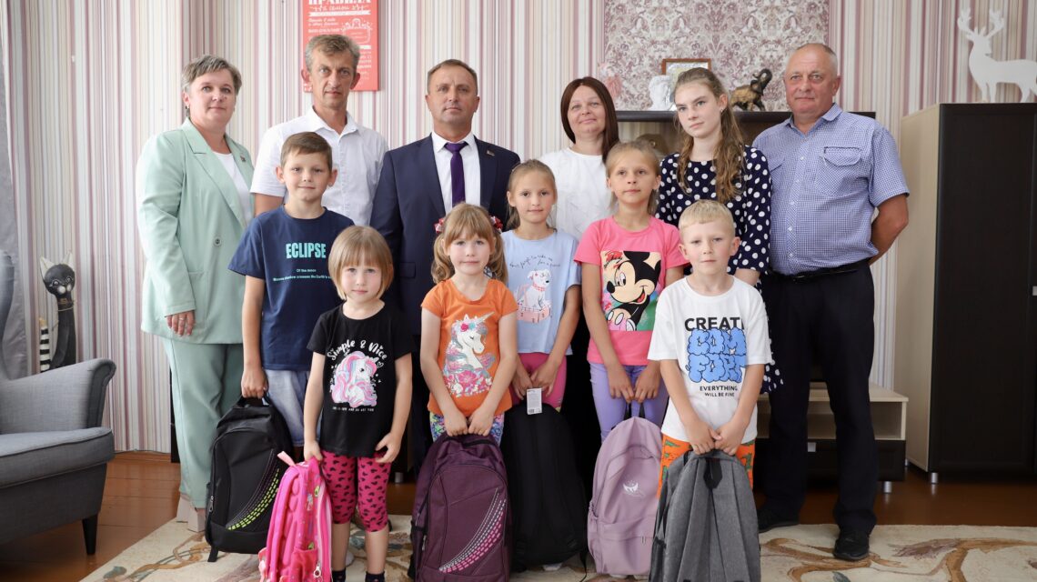 В преддверии нового учебного года Александр Васильевич поздравил ребят и вручил подарки — школьные портфели и наборы канцелярских принадлежностей.