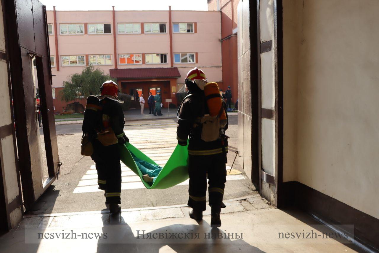 Еще одна вводная — в ЦОУ Несвижского РОЧС поступило сообщение от диспетчера ООО «Несвижский завод детского питания» об аварии на объекте в результате разгерметизации трубопровода с аммиаком, в результате чего произошел выброс аммиака общей массой до 1 тонны. Достоверных сведений о пострадавших нет.