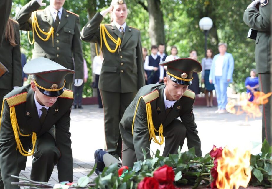 Акция началась с митинга у Вечного огня в городском парке и торжественного возложения цветов к мемориалу.