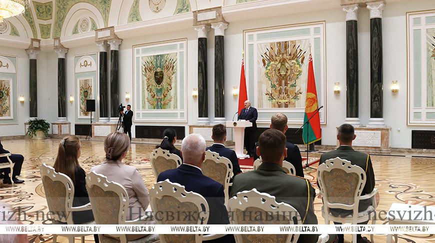 Обращаясь в завершение к награжденным, Александр Лукашенко сказал: «Вы — люди особые. И в этот особый день для страны я еще раз поздравляю вас с высокими государственными наградами. Здесь лучшие из лучших. Я буду рад встретиться с вами, даст бог, еще раз, а, может быть, и не единожды в этом зале, чтобы вручить вам очередные государственные награды. Уверен, вы этого добьетесь. Вы этого заслуживаете. Счастья, успехов вам! А главное — здоровья. Как я говорю, все остальное мы купим. С праздником вас!»