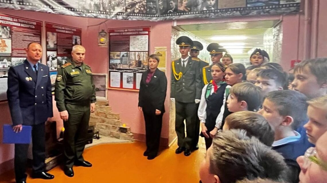 Руководитель по военно-патриотическому воспитанию Валерий Трояновский рассказал об экспозиции и провел небольшую экскурсию.