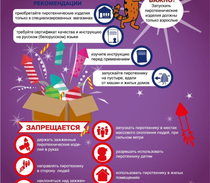 - Приобретать пиротехнические изделия следует только в специализированных отделах магазинов или специализированных магазинах. Изделия должны иметь сертификаты соответствия, а также подробные инструкции по применению. Обратите внимание на срок годности (как правило, пиротехника хранится не более трех лет) и инструкцию (обязательно на белорусском или русском языке). Рассмотрите упаковку и само изделие: дефектов быть не должно, фитиль заклеен или спрятан под обертку.